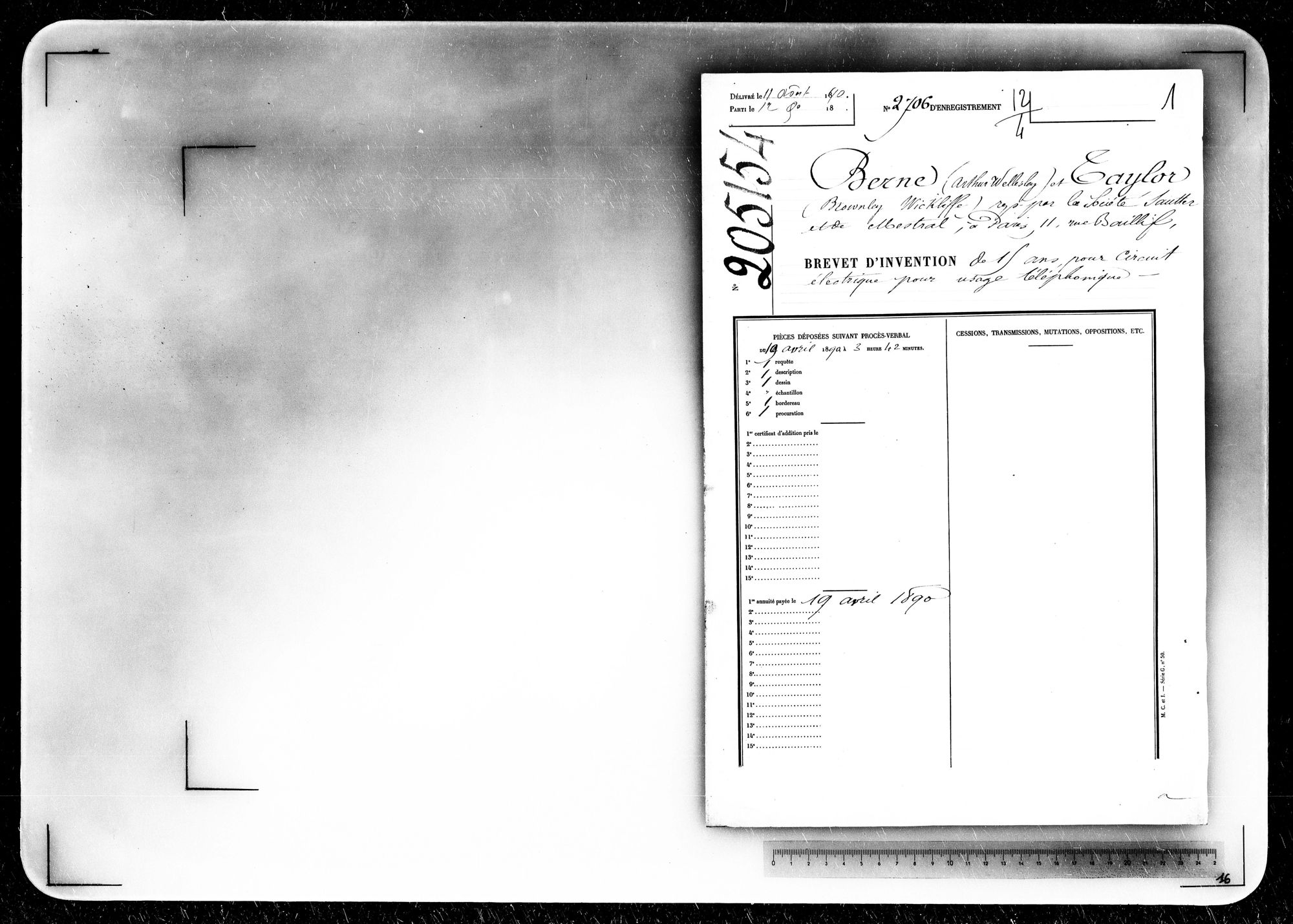 - Brevet d'invention de 15 ans