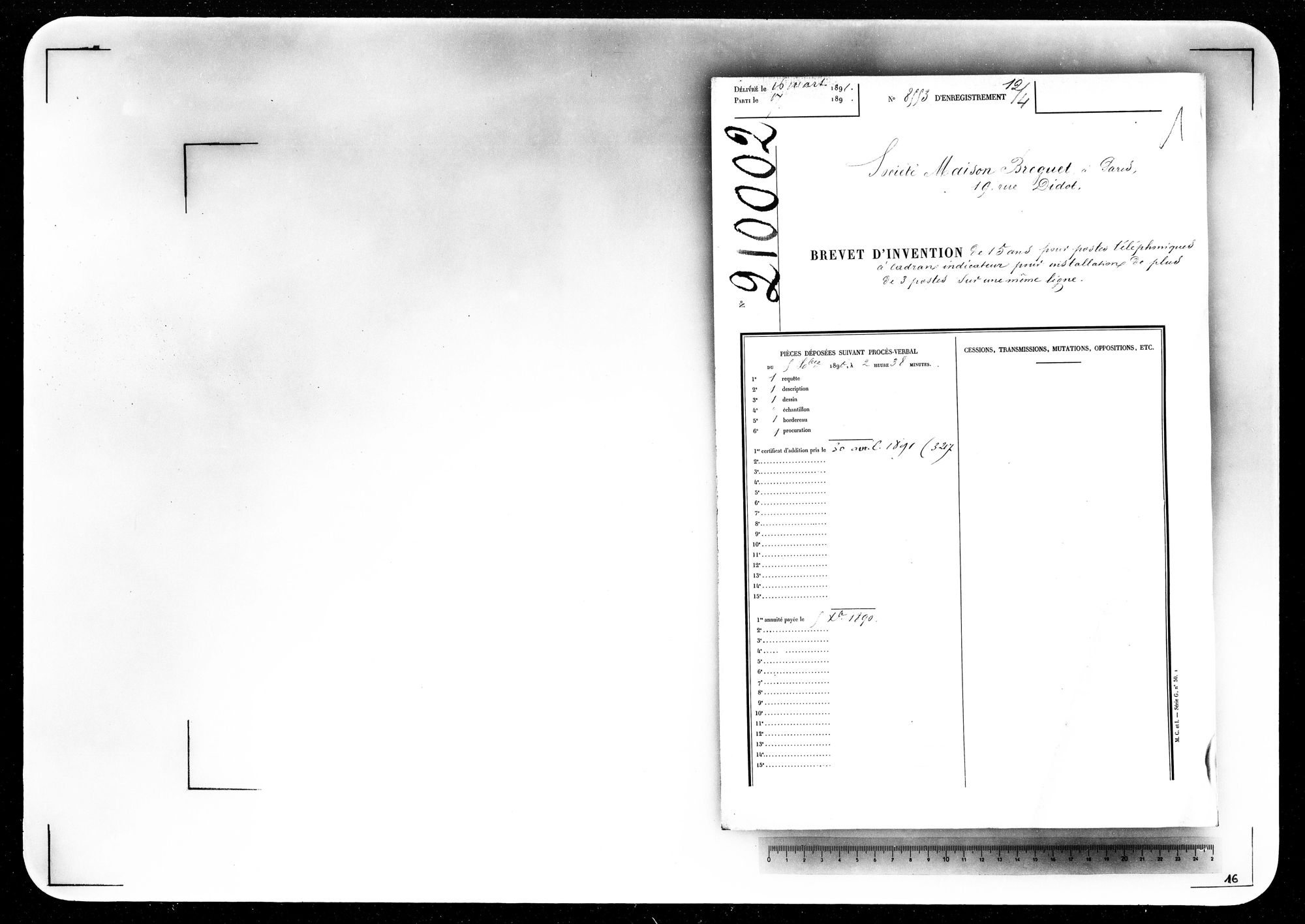 - Brevet d'invention de 15 ans