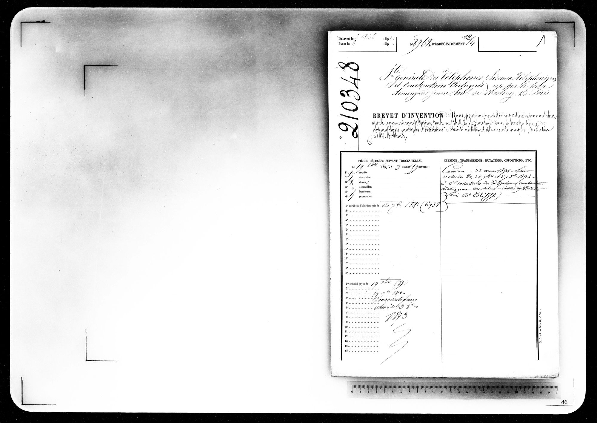 - Brevet d'invention de 15 ans
