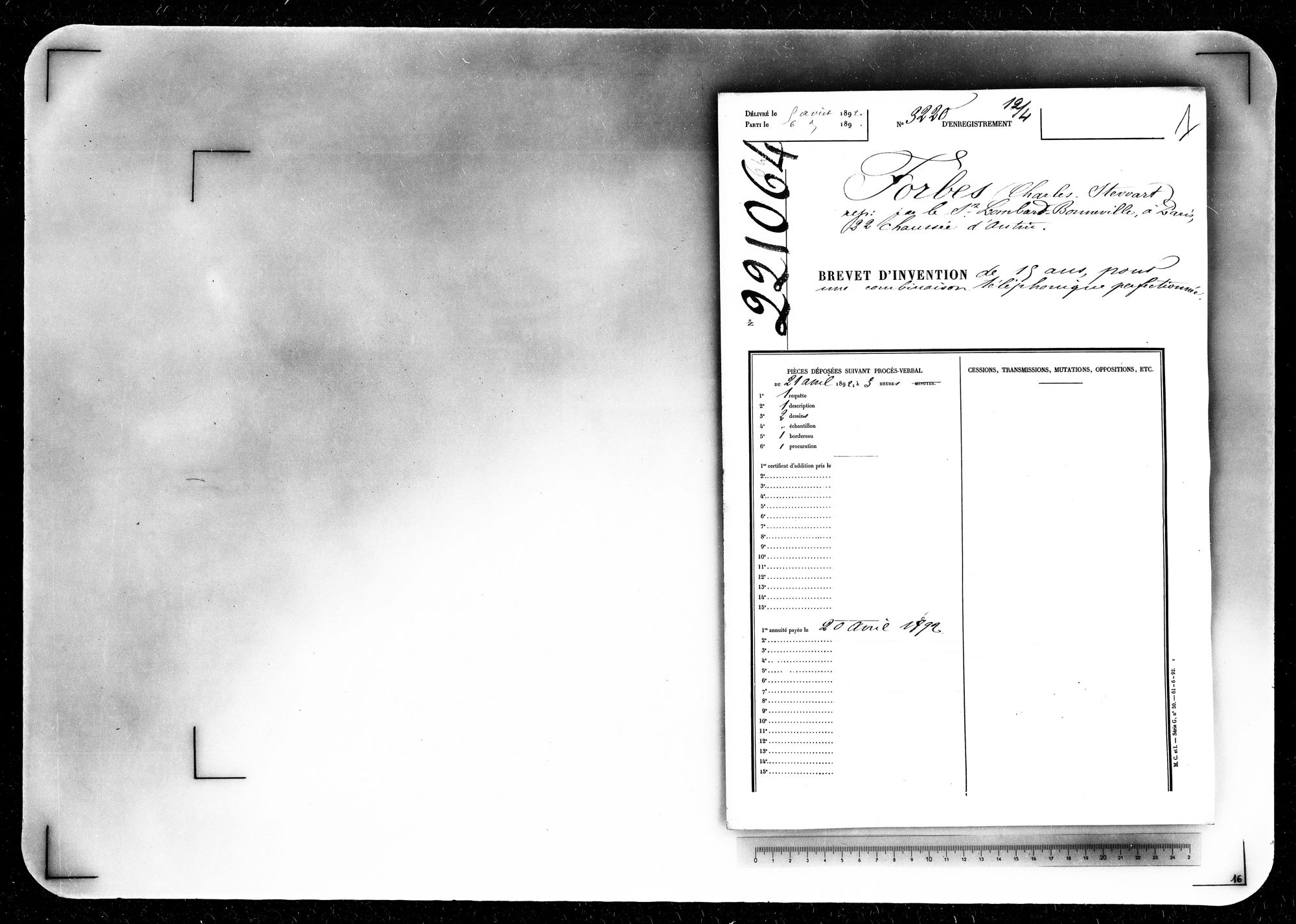 - Brevet d'invention de 15 ans