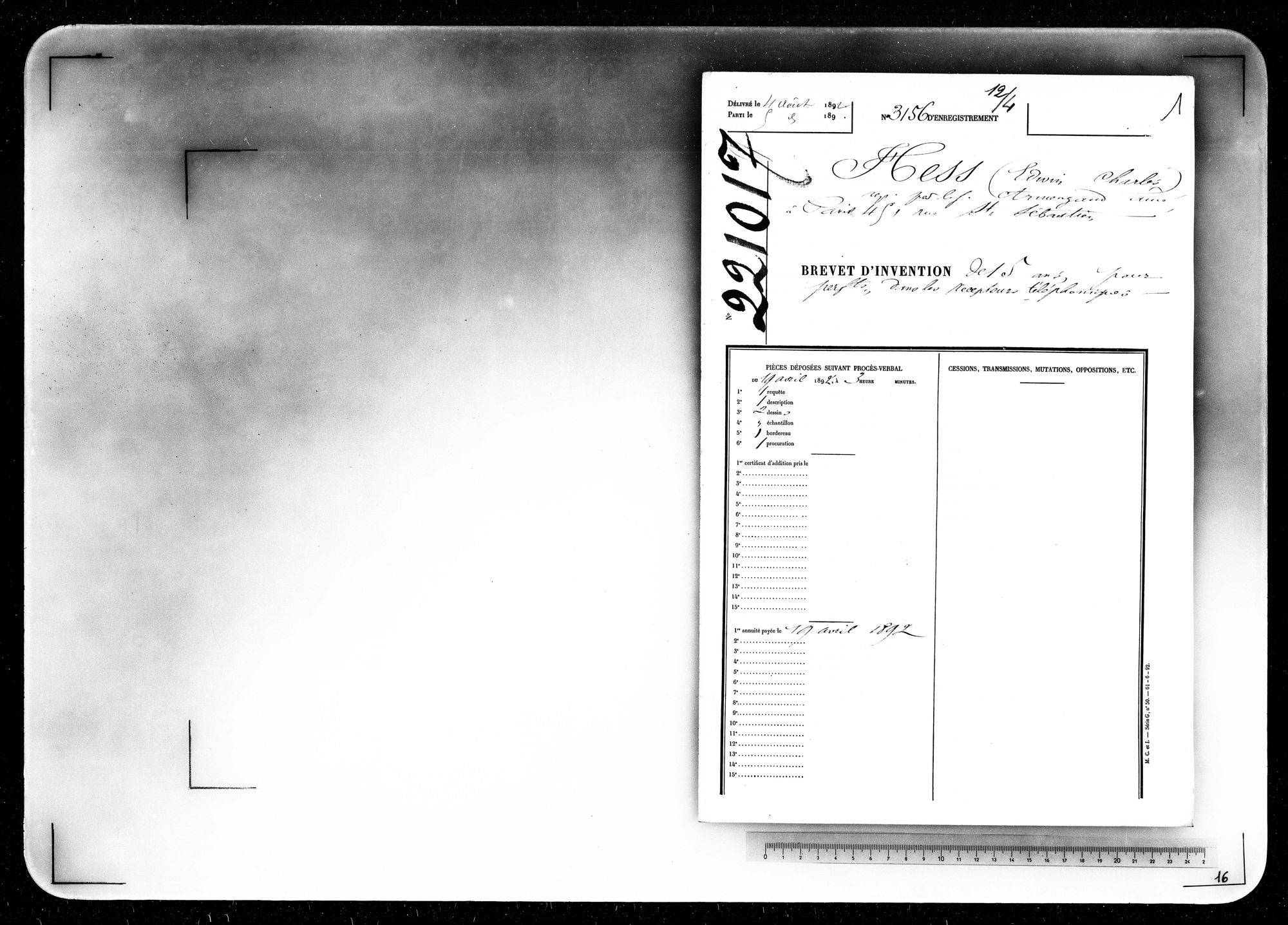 - Brevet d'invention de 15 ans