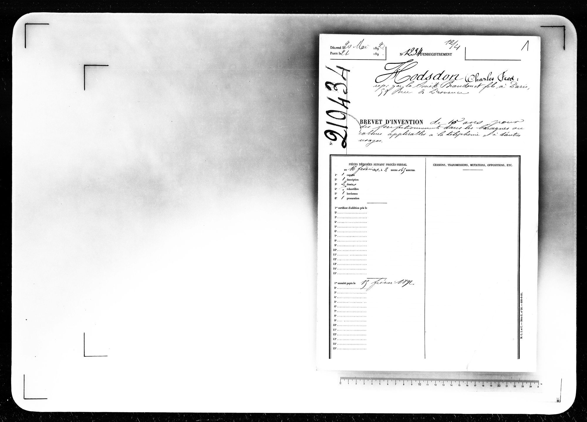 - Brevet d'invention de 15 ans