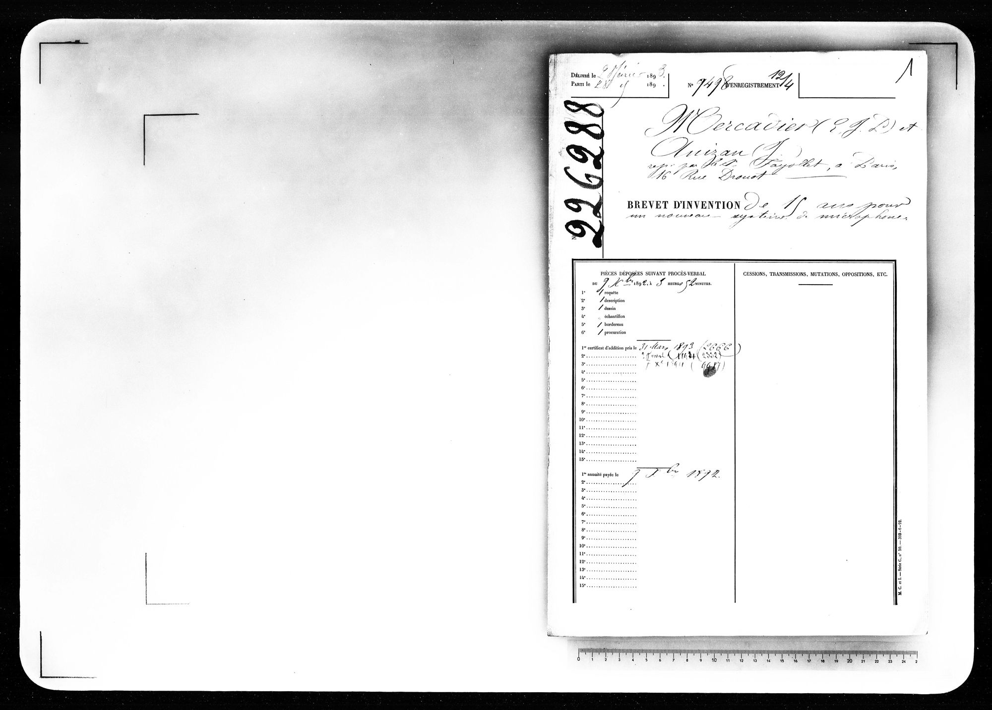 - Brevet d'invention de 15 ans