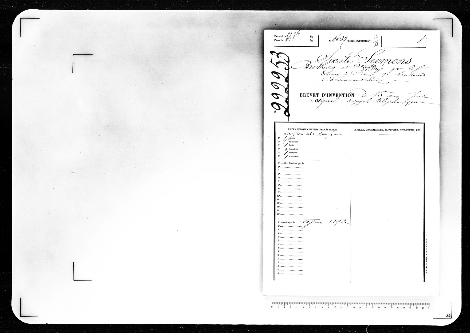 - Brevet d'invention de 15 ans