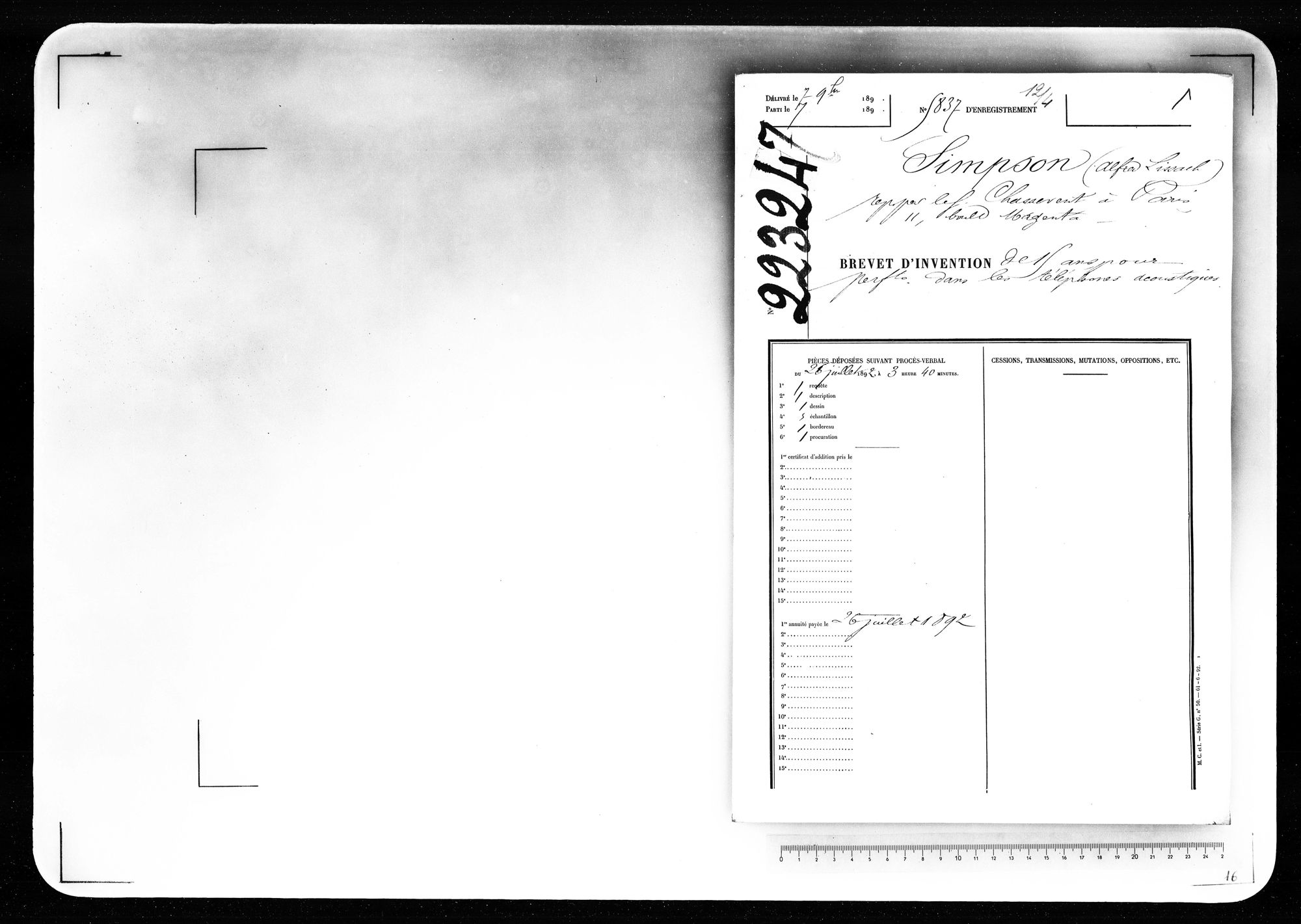 - Brevet d'invention de 15 ans