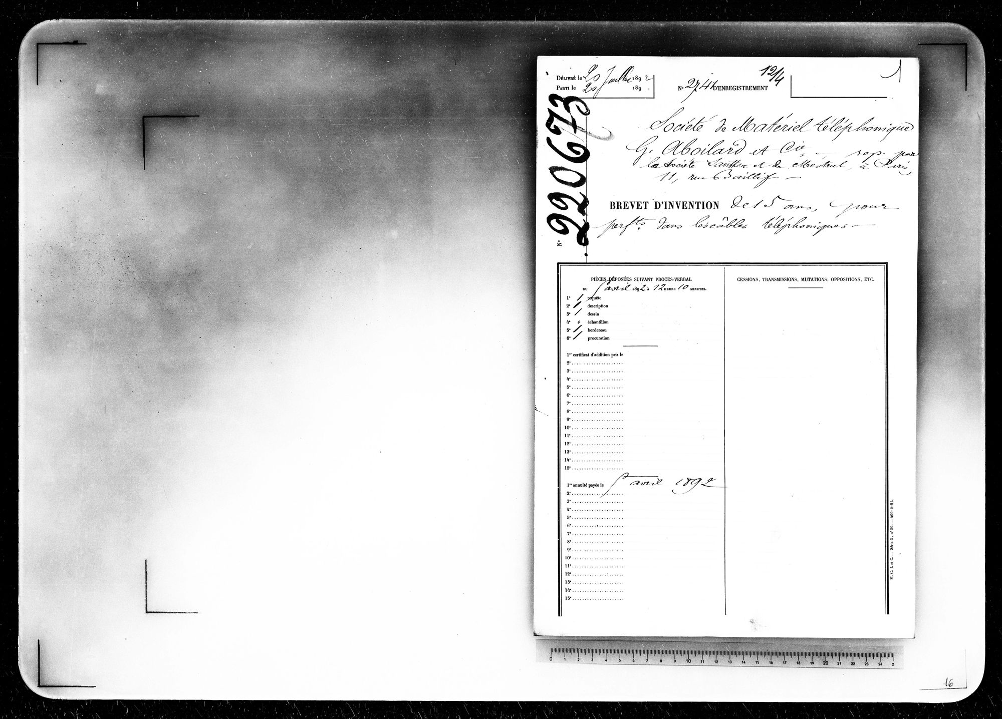 - Brevet d'invention de 15 ans