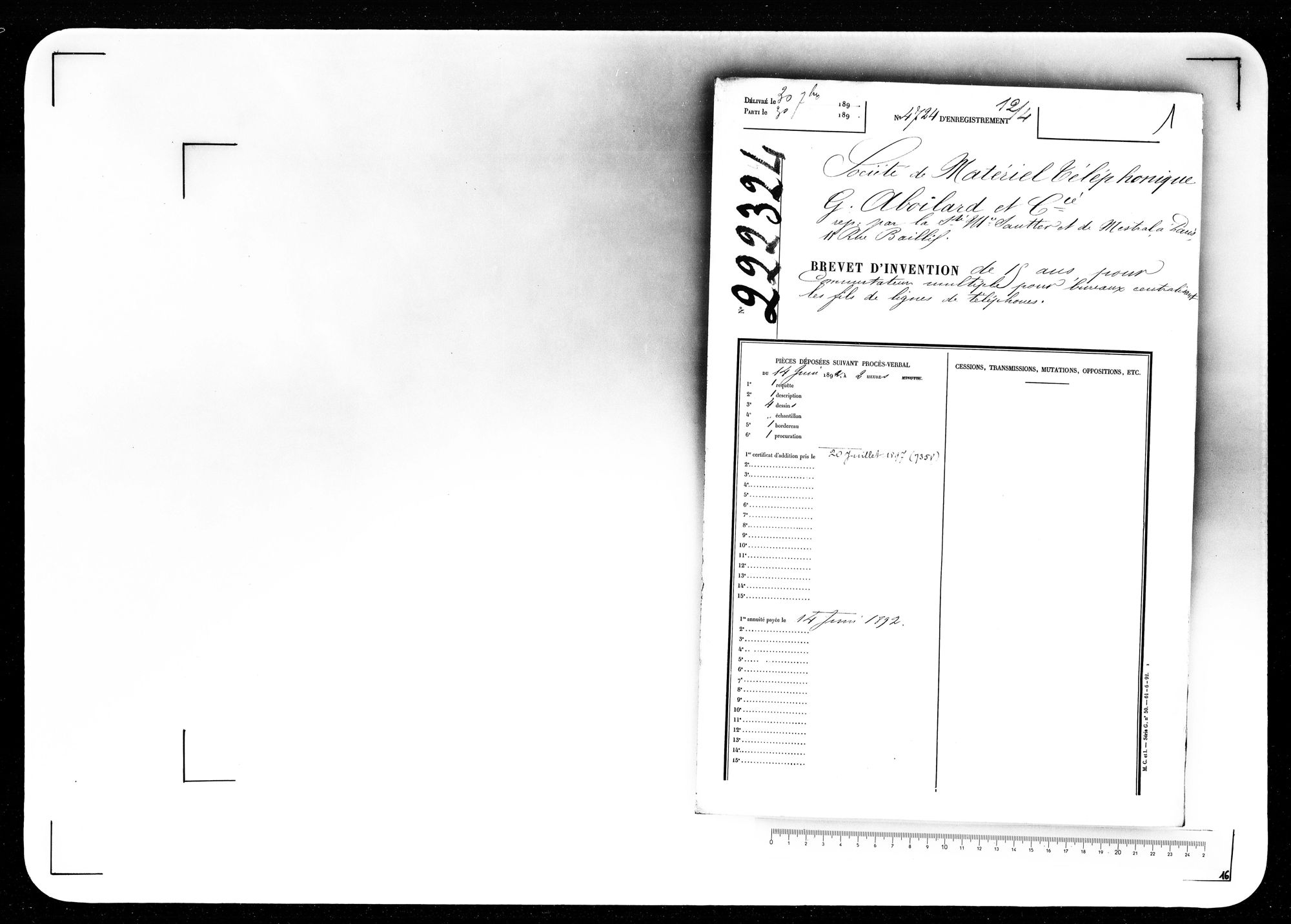 - Brevet d'invention de 15 ans