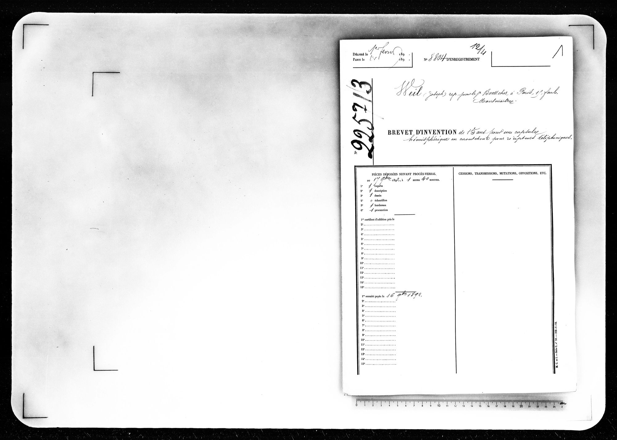 - Brevet d'invention de 15 ans