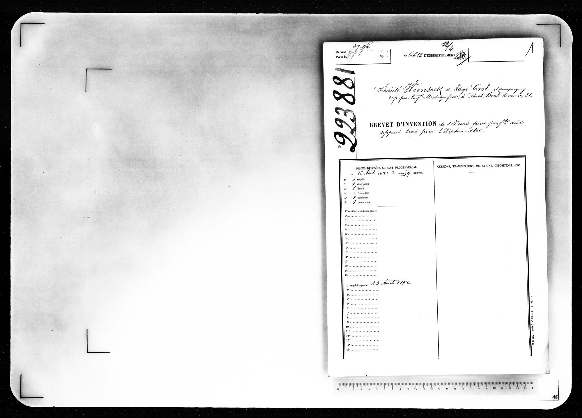 - Brevet d'invention de 15 ans