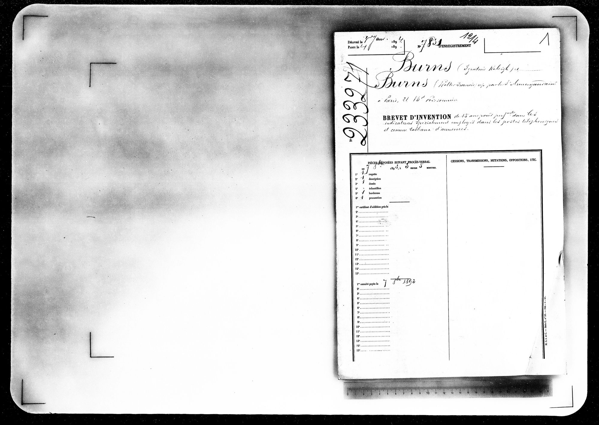 - Brevet d'invention de 15 ans