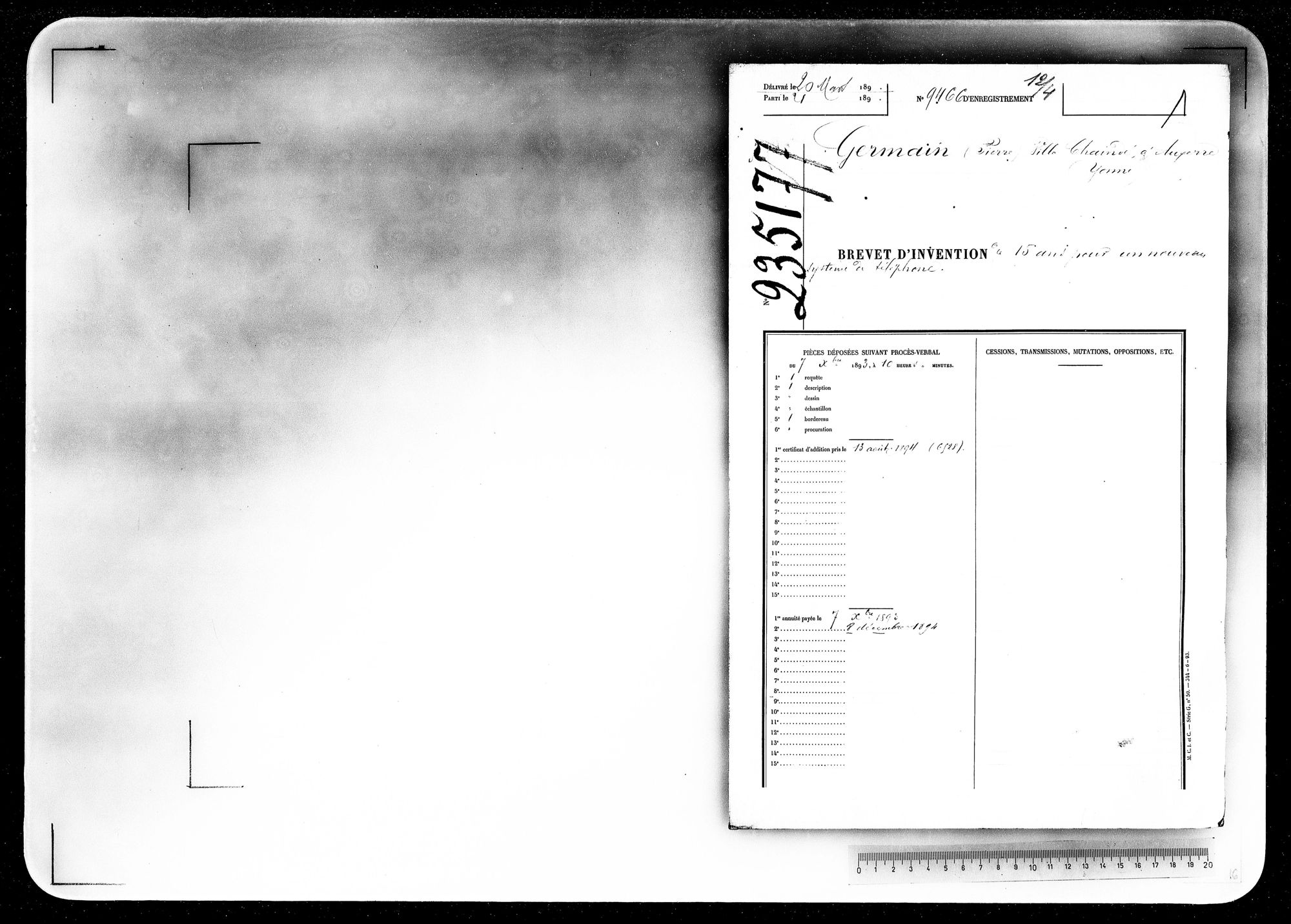 - Brevet d'invention de 15 ans