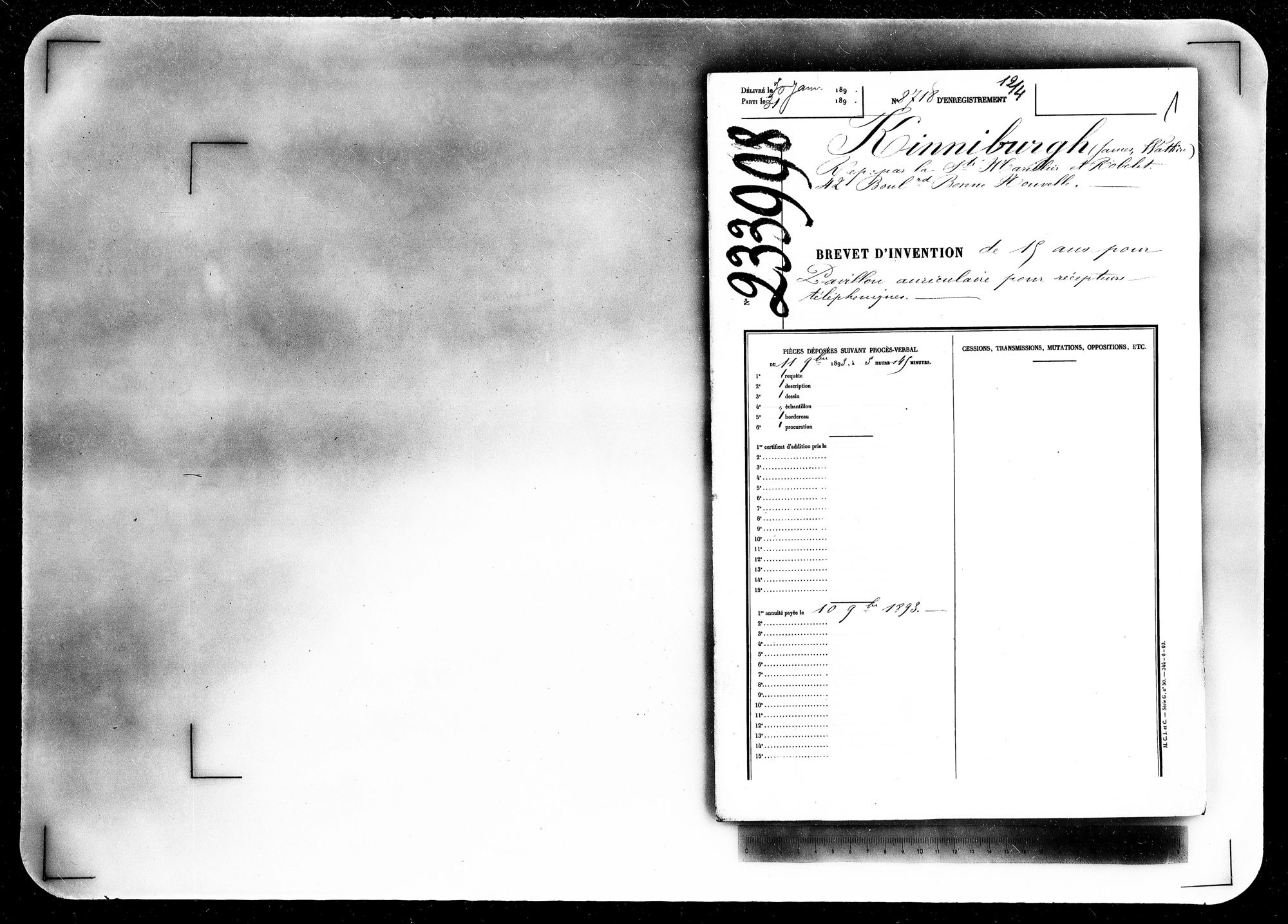 - Brevet d'invention de 15 ans