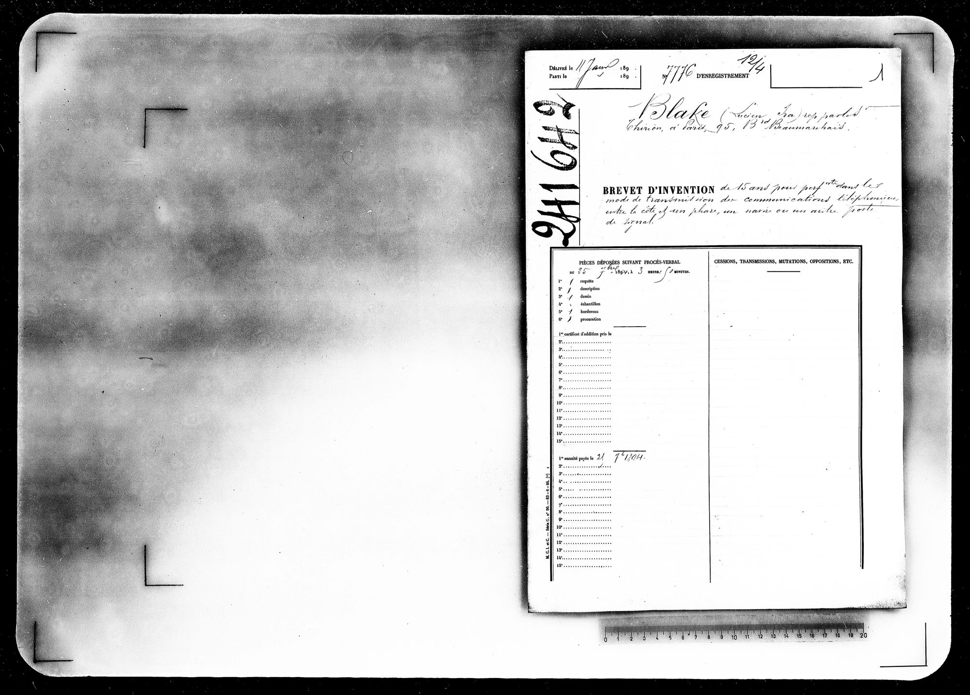 - Brevet d'invention de 15 ans