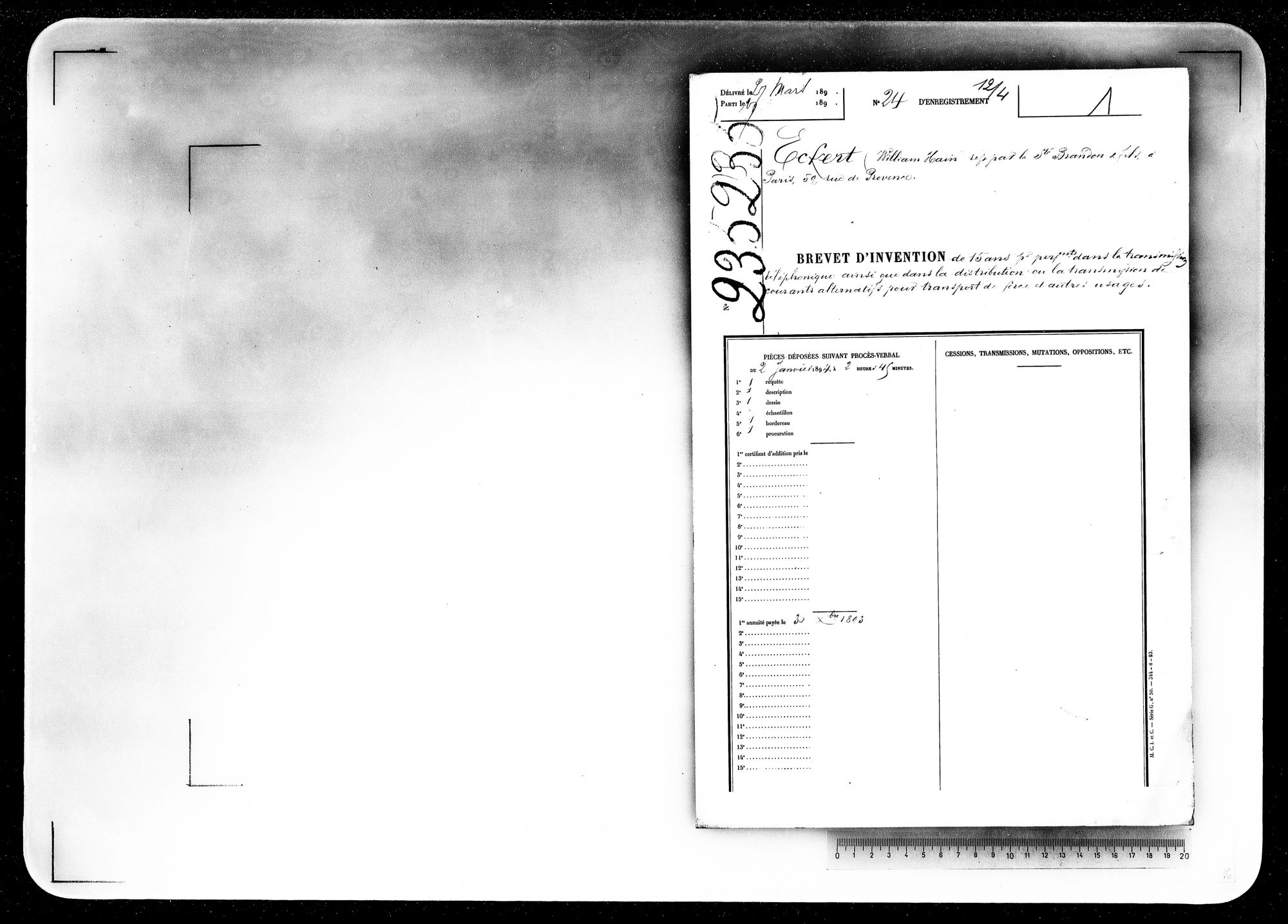 - Brevet d'invention de 15 ans