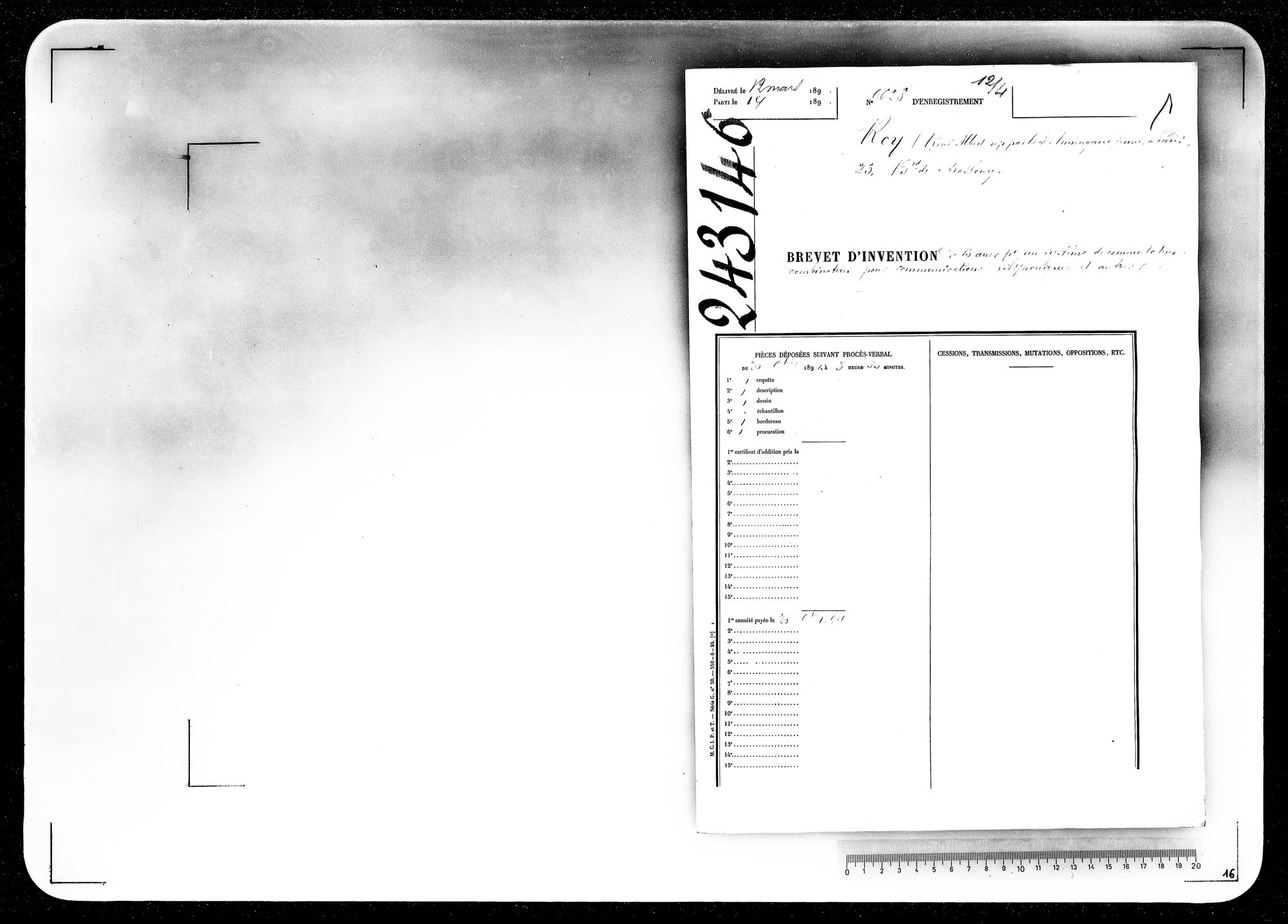 - Brevet d'invention de 15 ans