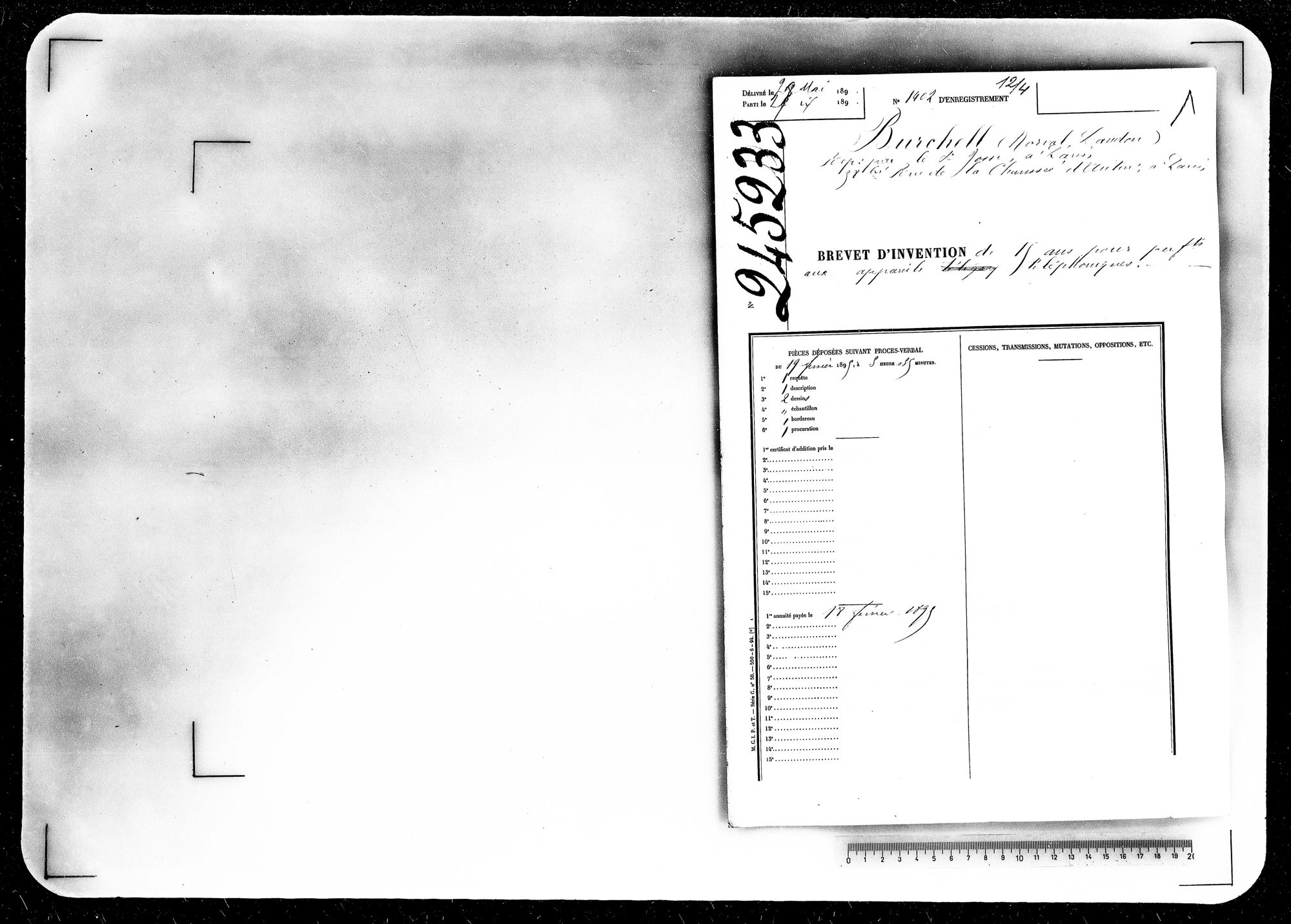 - Brevet d'invention de 15 ans