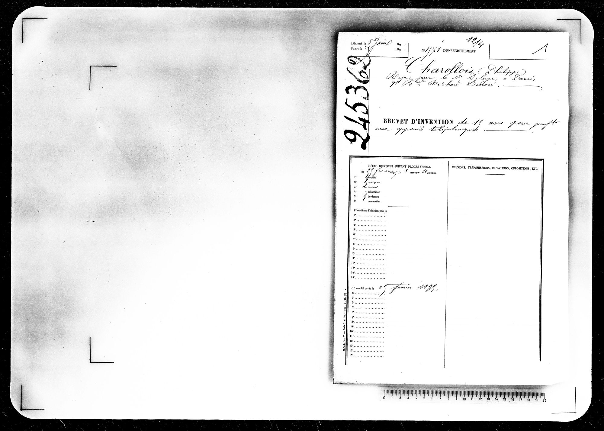 - Brevet d'invention de 15 ans