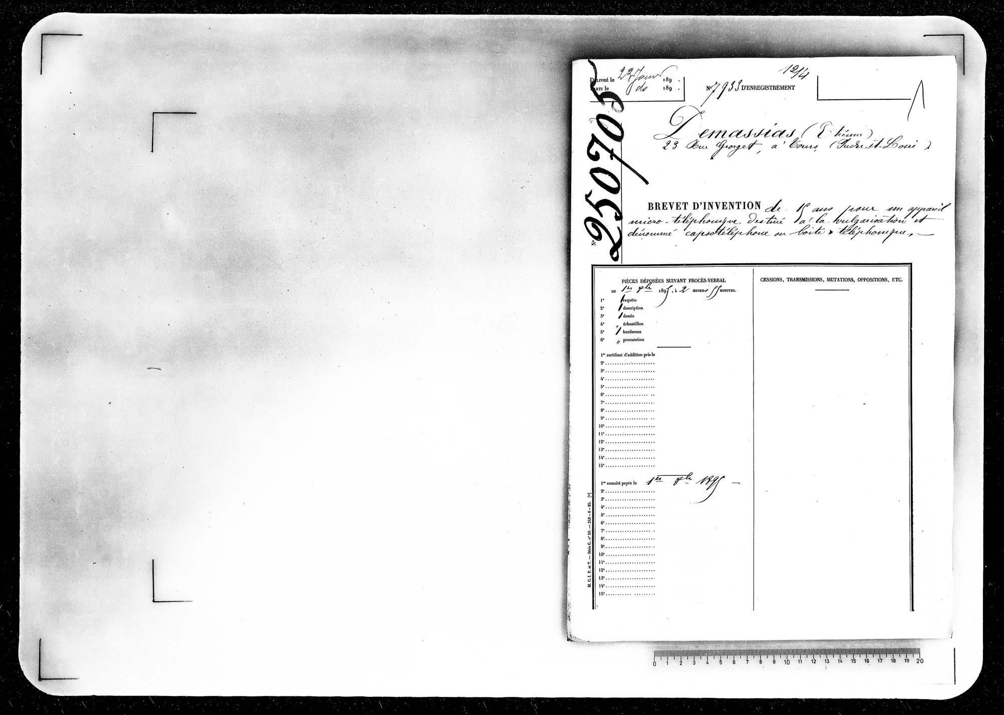 - Brevet d'invention de 15 ans