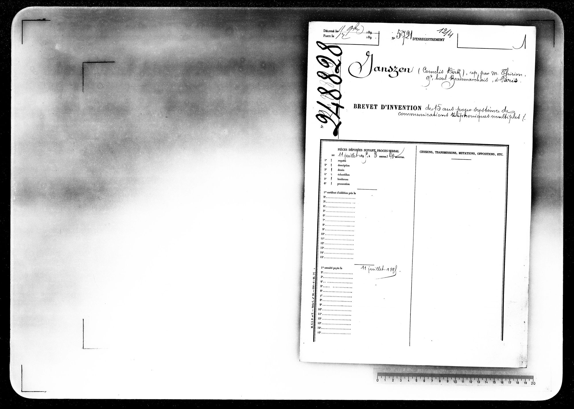 - Brevet d'invention de 15 ans
