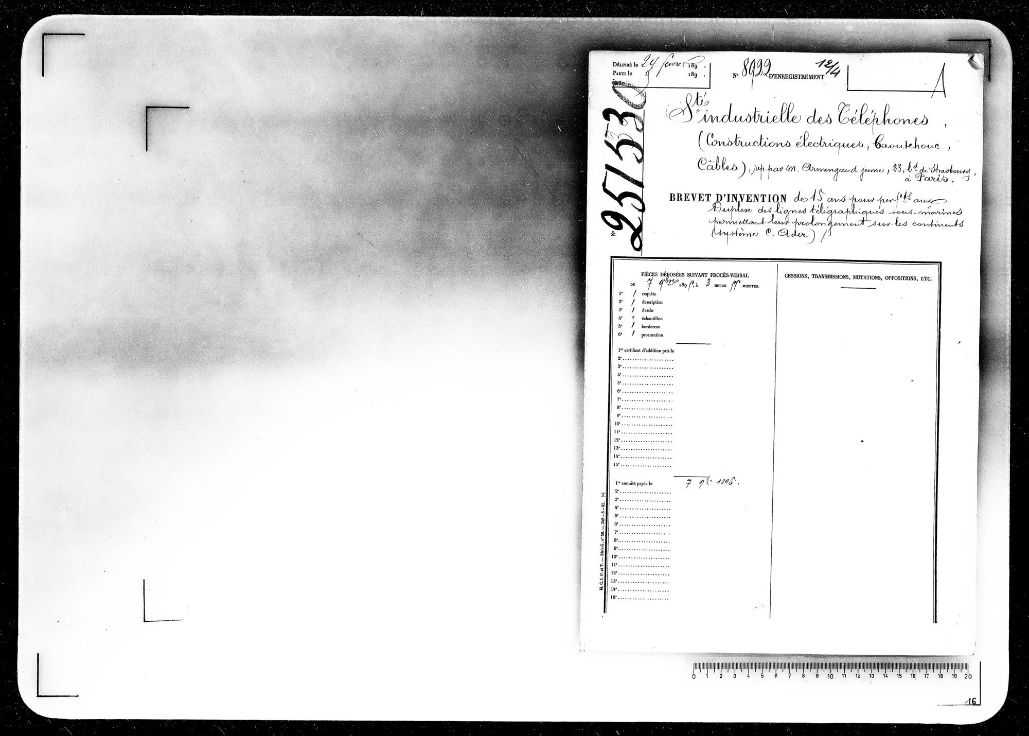 - Brevet d'invention de 15 ans