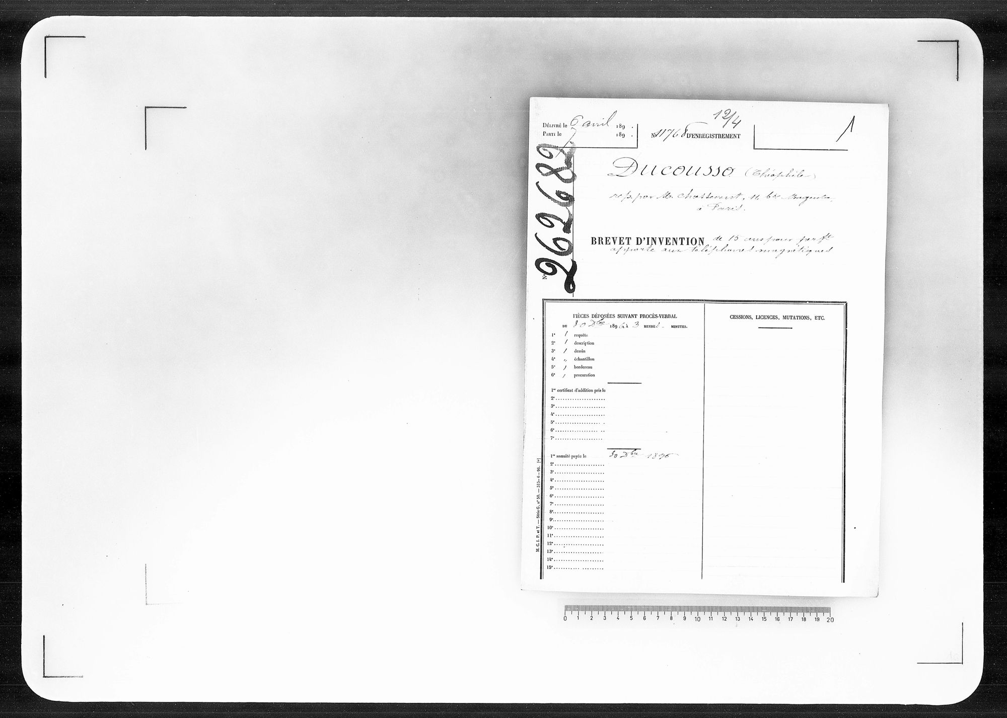 - Brevet d'invention de 15 ans
