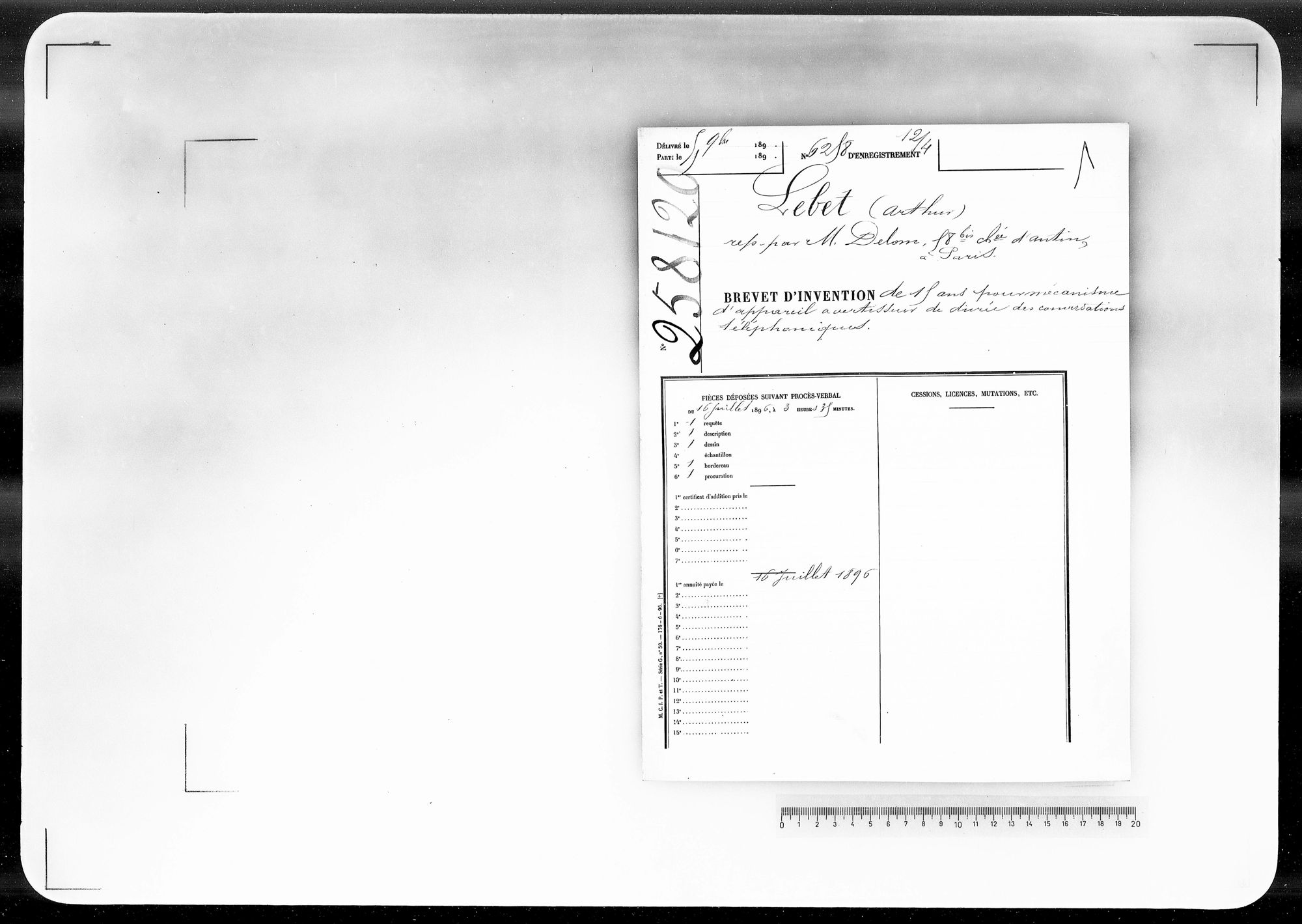 - Brevet d'invention de 15 ans