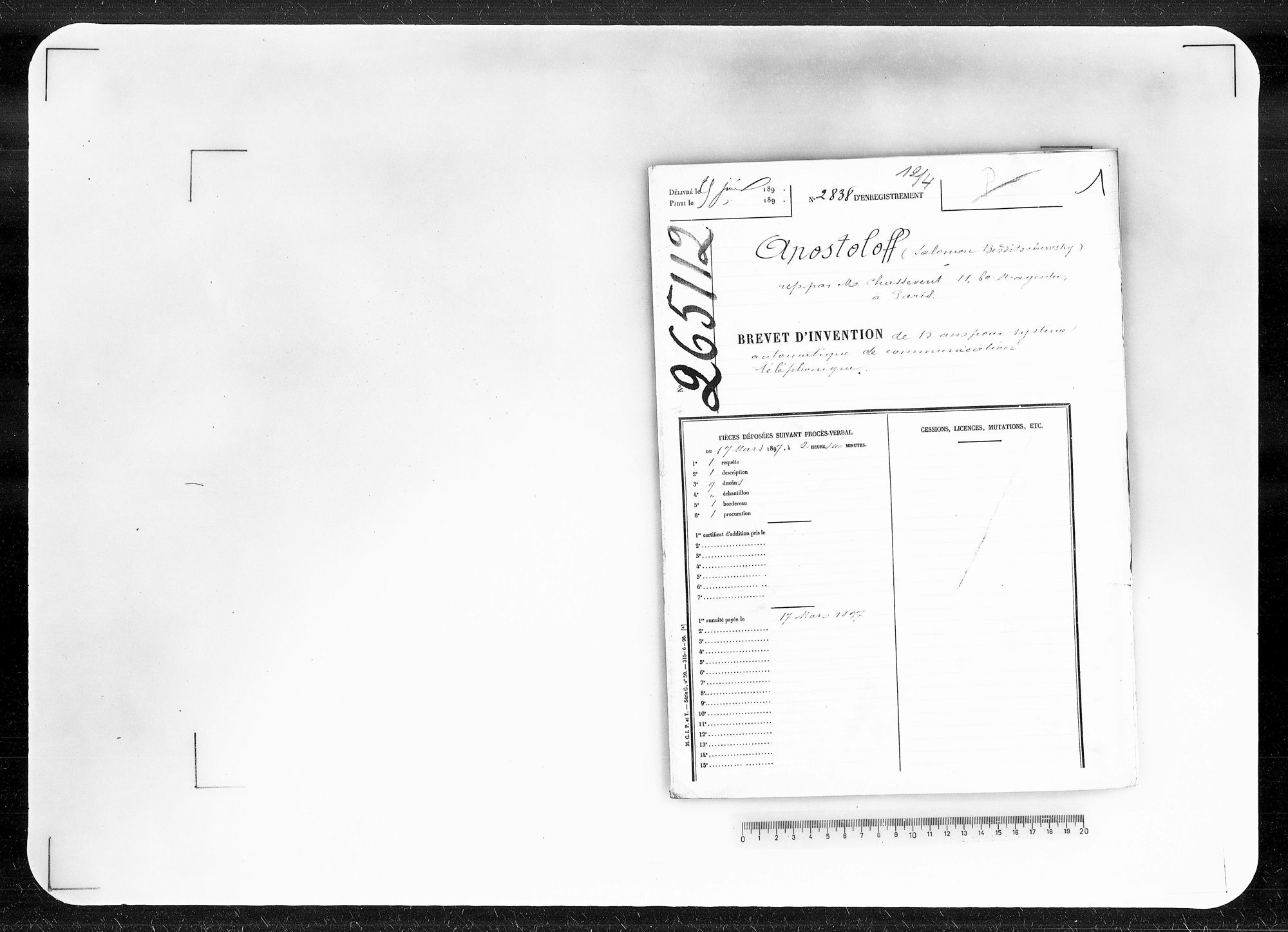 - Brevet d'invention de 15 ans
