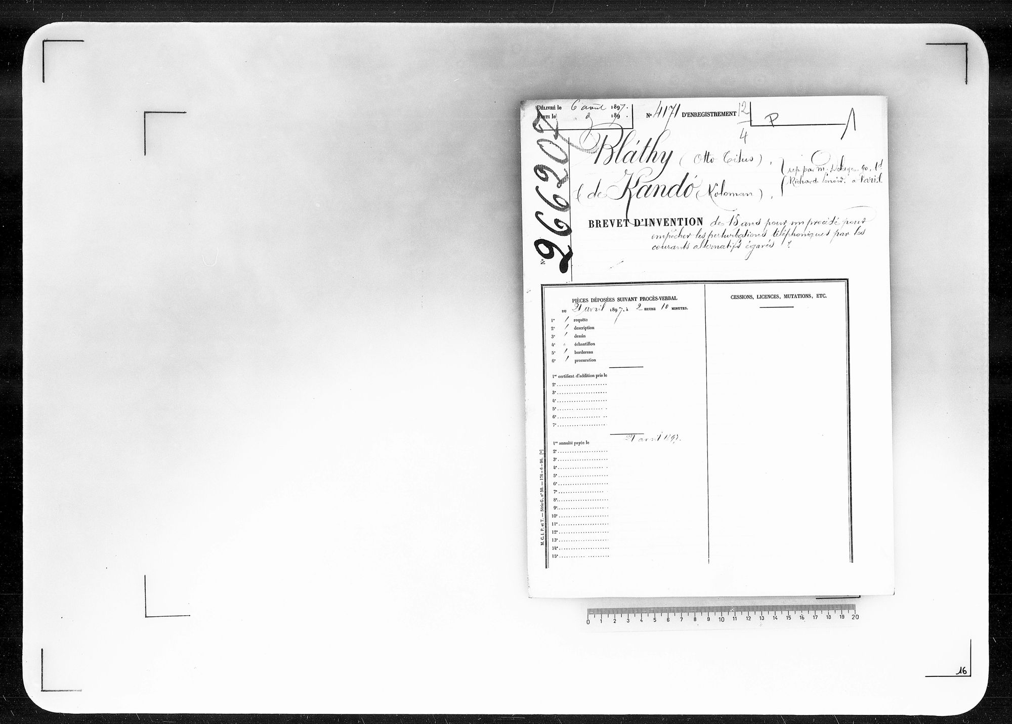 - Brevet d'invention de 15 ans