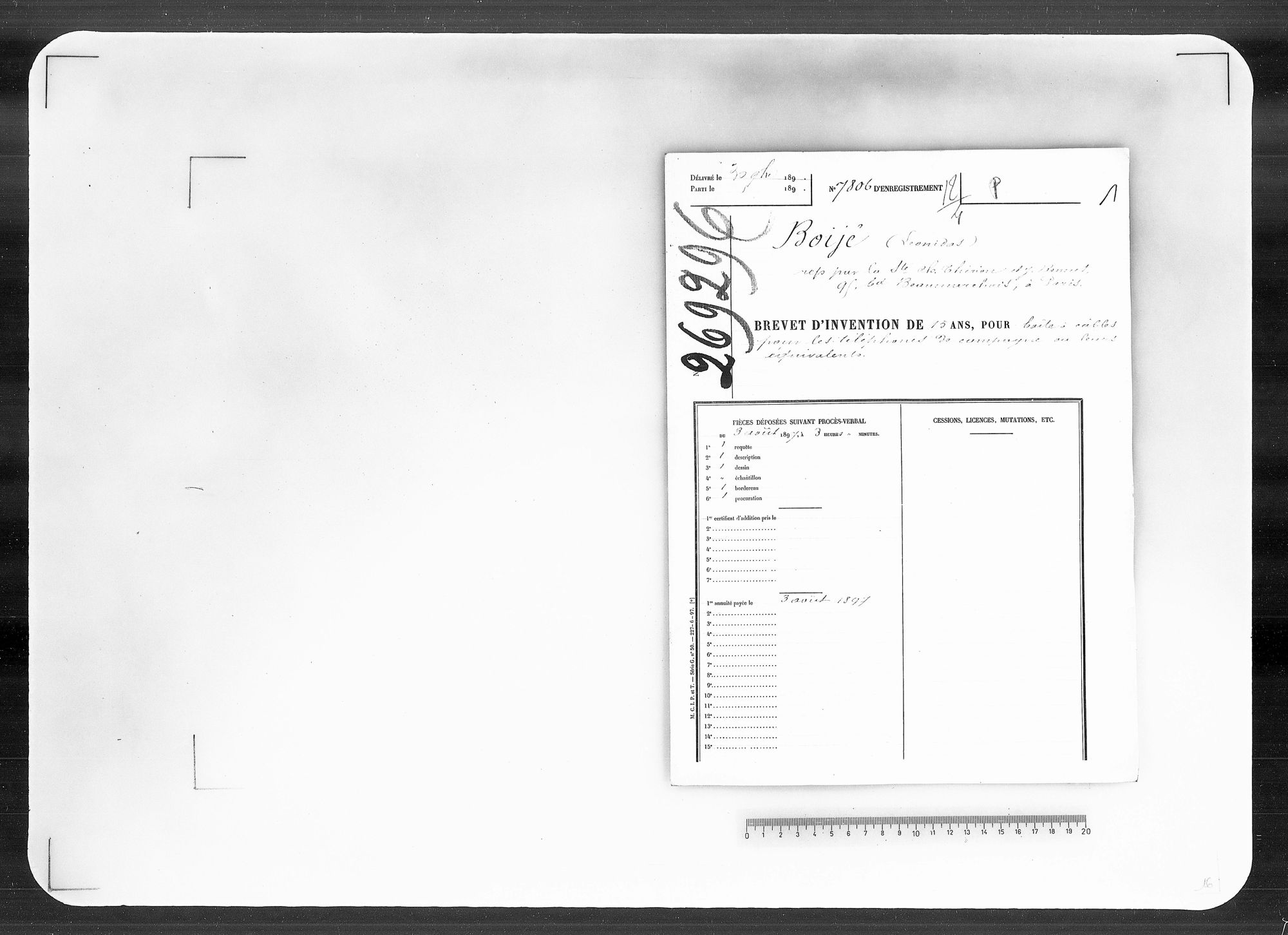 - Brevet d'invention de 15 ans