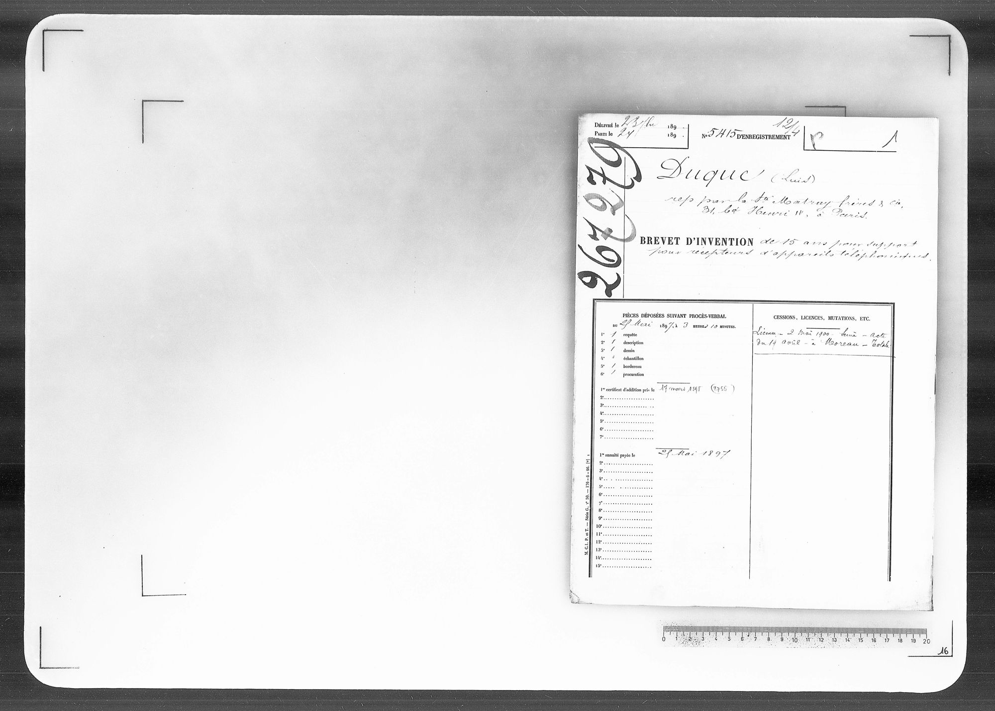 - Brevet d'invention de 15 ans