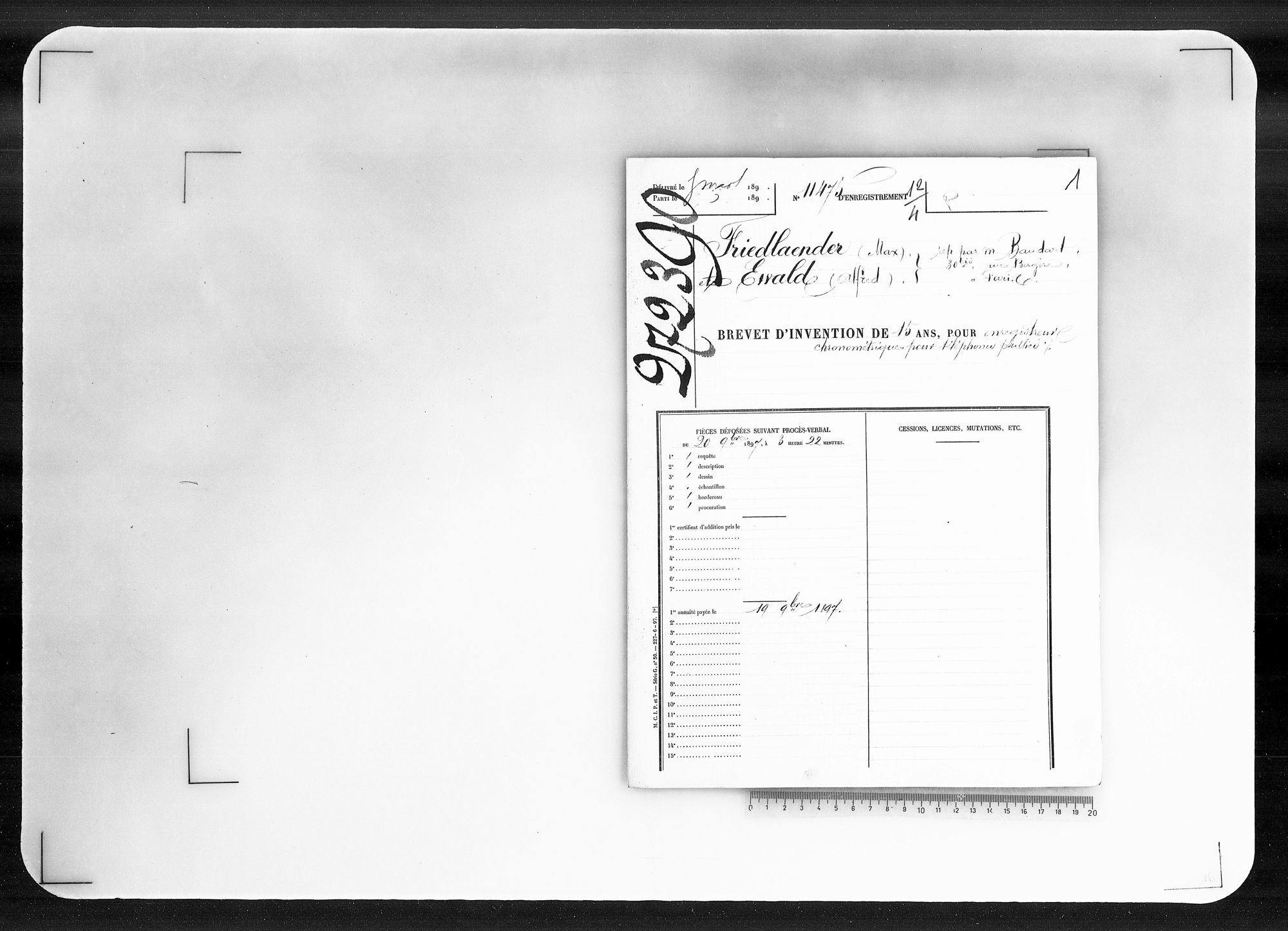 - Brevet d'invention de 15 ans
