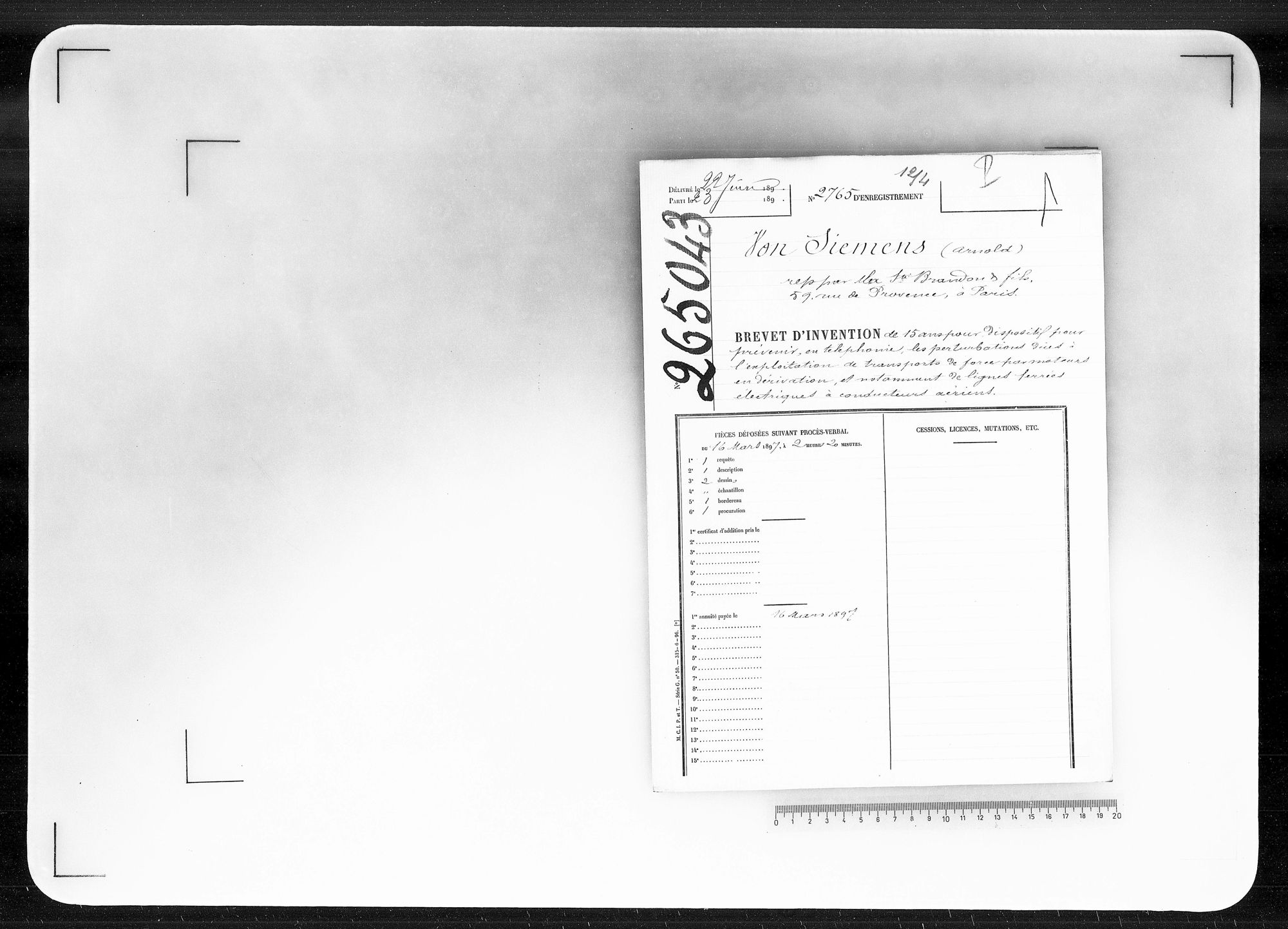 - Brevet d'invention de 15 ans