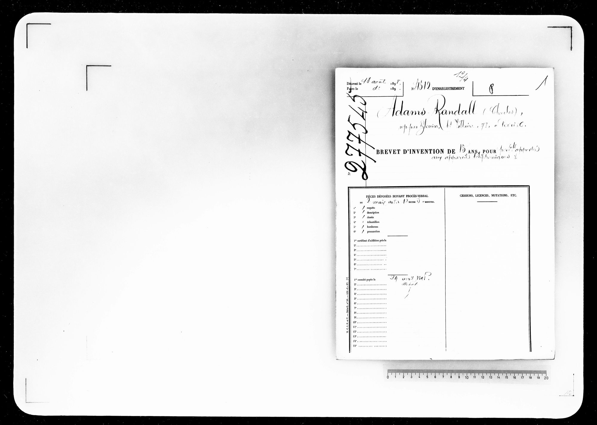- Brevet d'invention de 15 ans