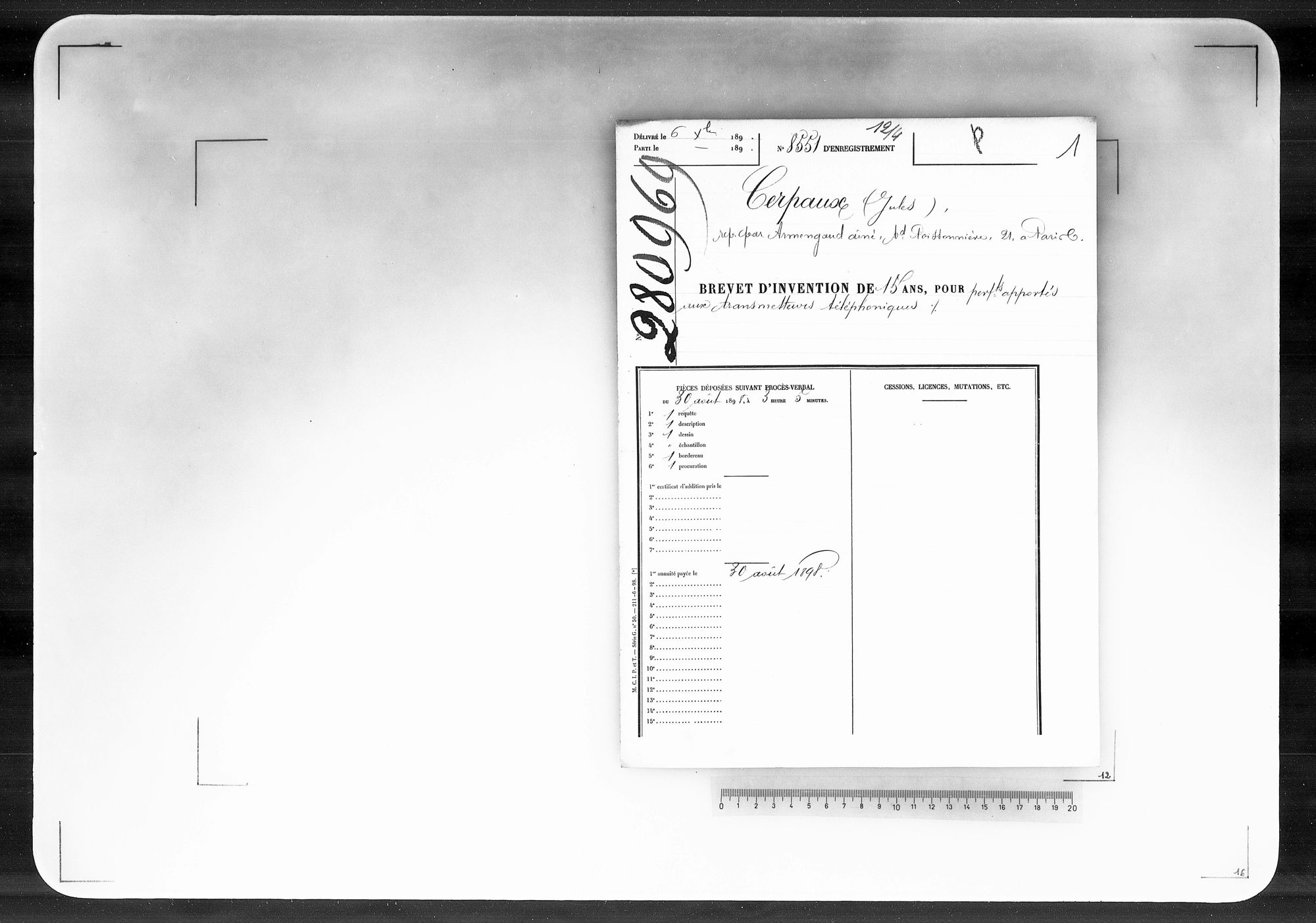 - Brevet d'invention de 15 ans