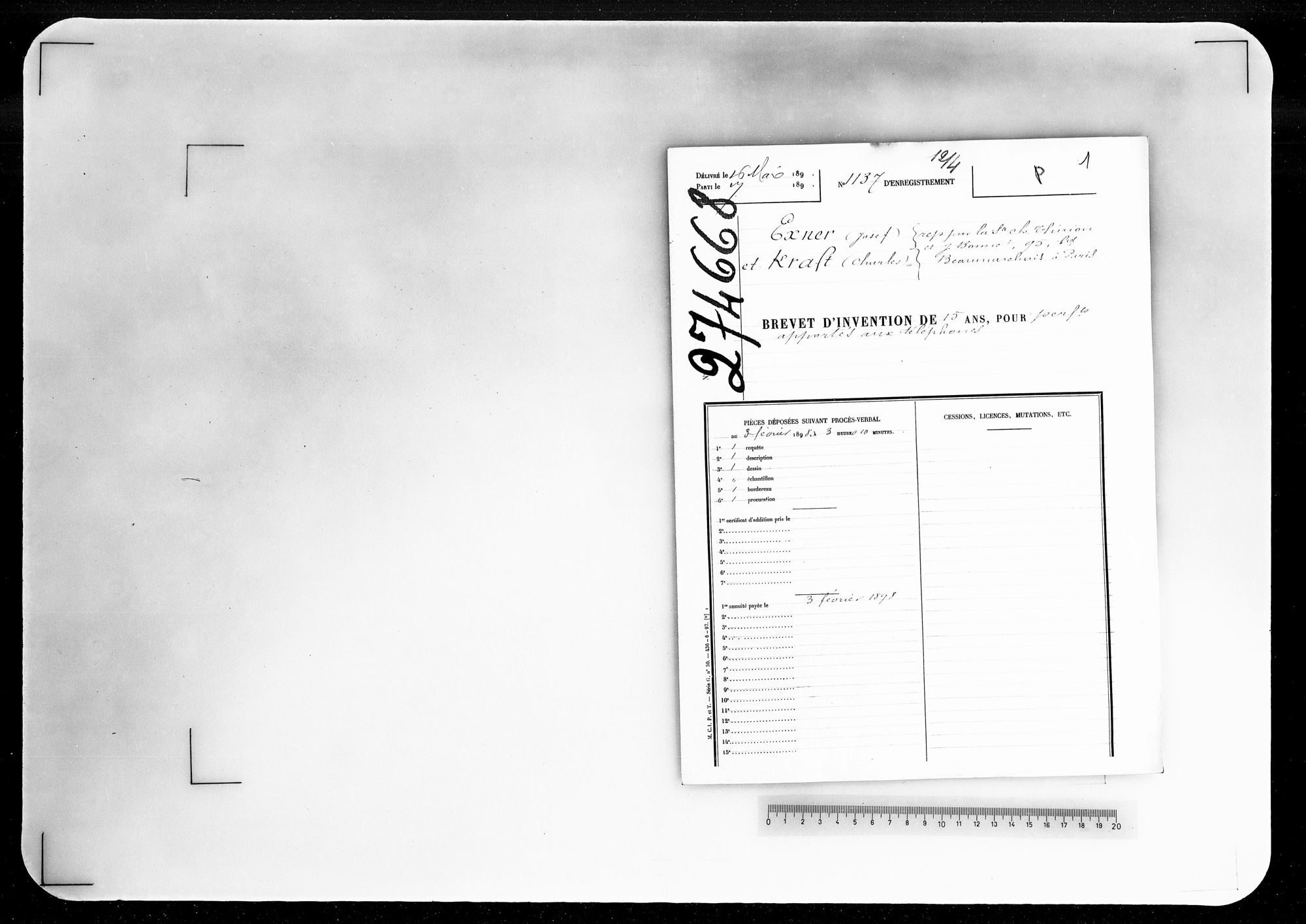 - Brevet d'invention de 15 ans