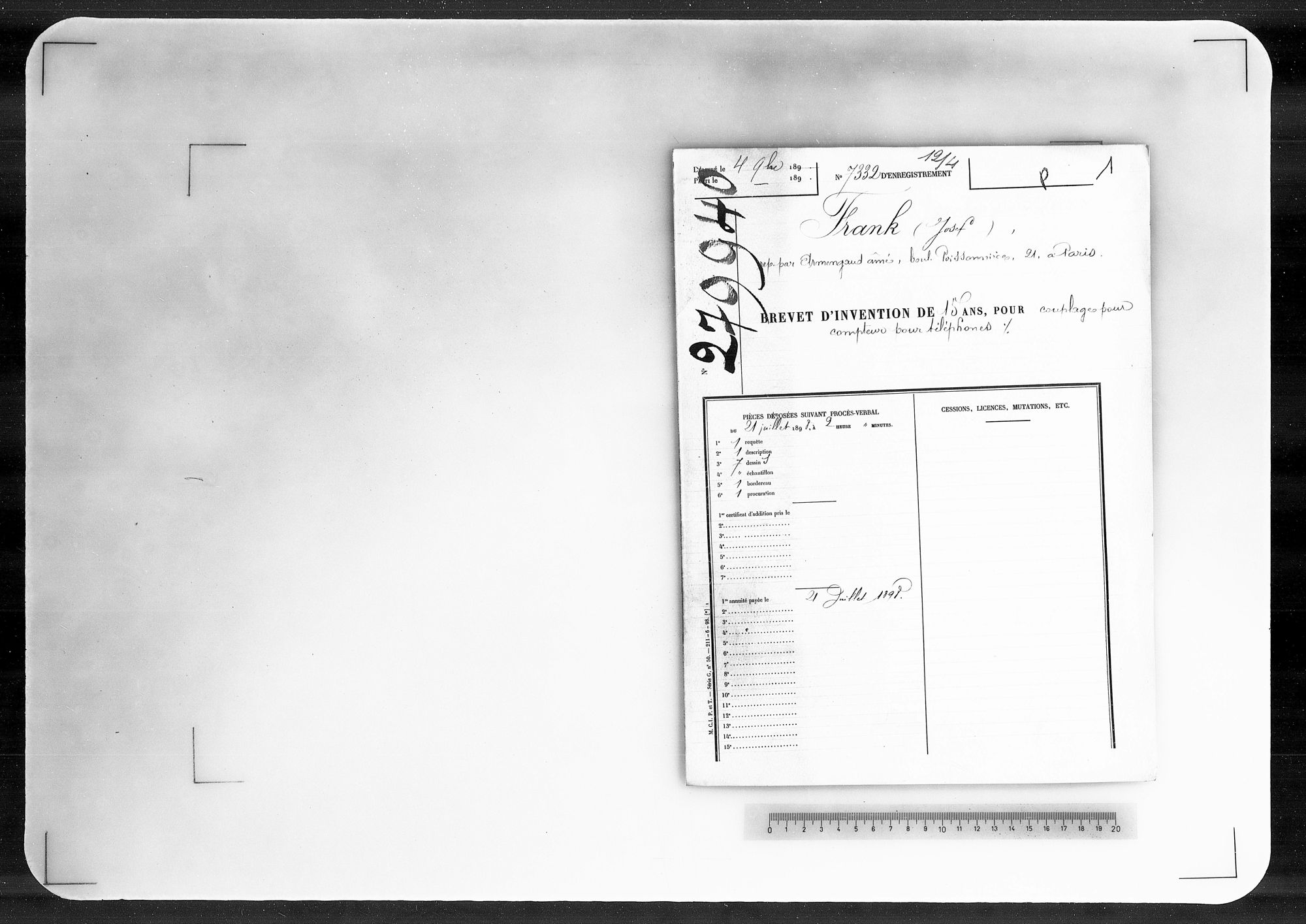 - Brevet d'invention de 15 ans