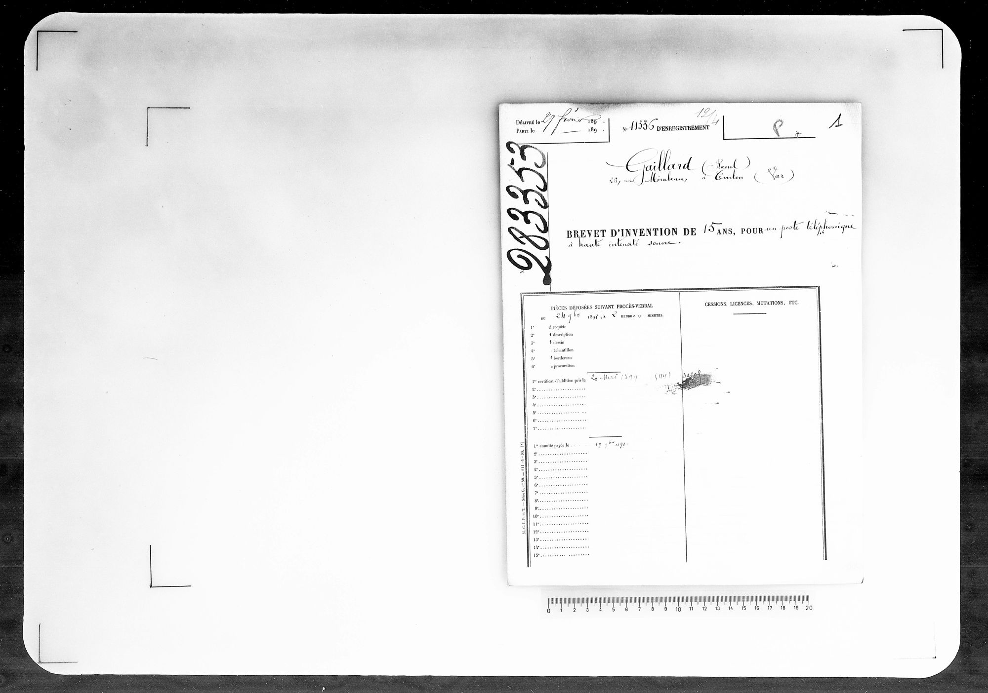 - Brevet d'invention de 15 ans