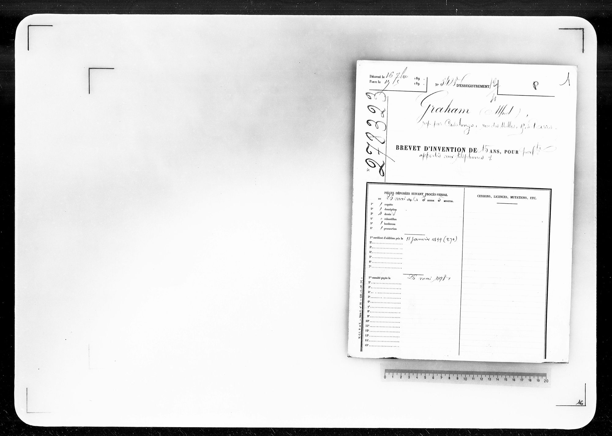 - Brevet d'invention de 15 ans