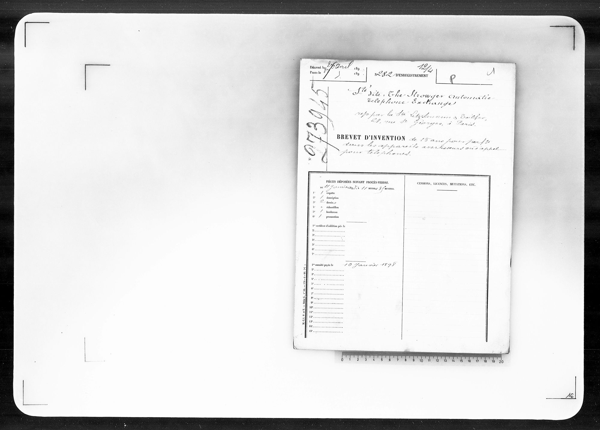 - Brevet d'invention de 15 ans