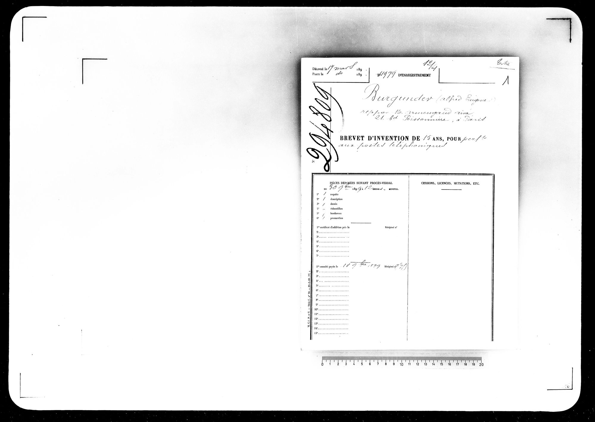 - Brevet d'invention de 15 ans