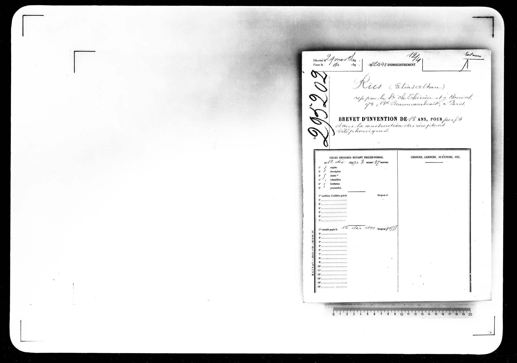 - Brevet d'invention de 15 ans