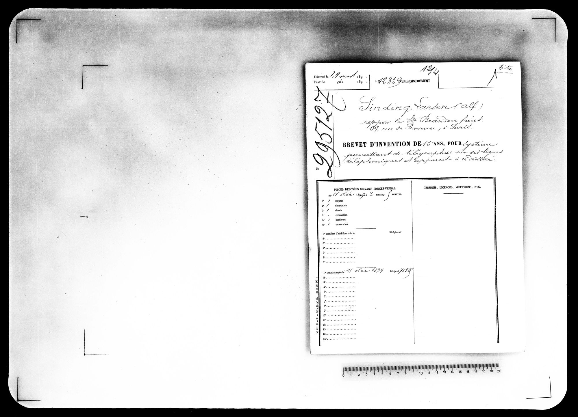 - Brevet d'invention de 15 ans