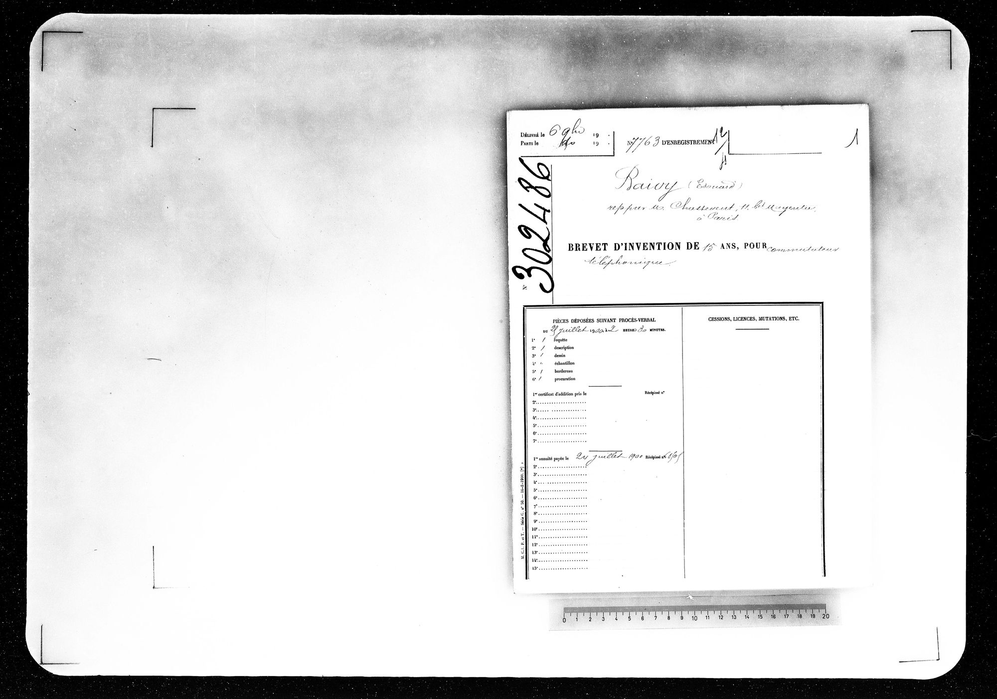 - Brevet d'invention de 15 ans