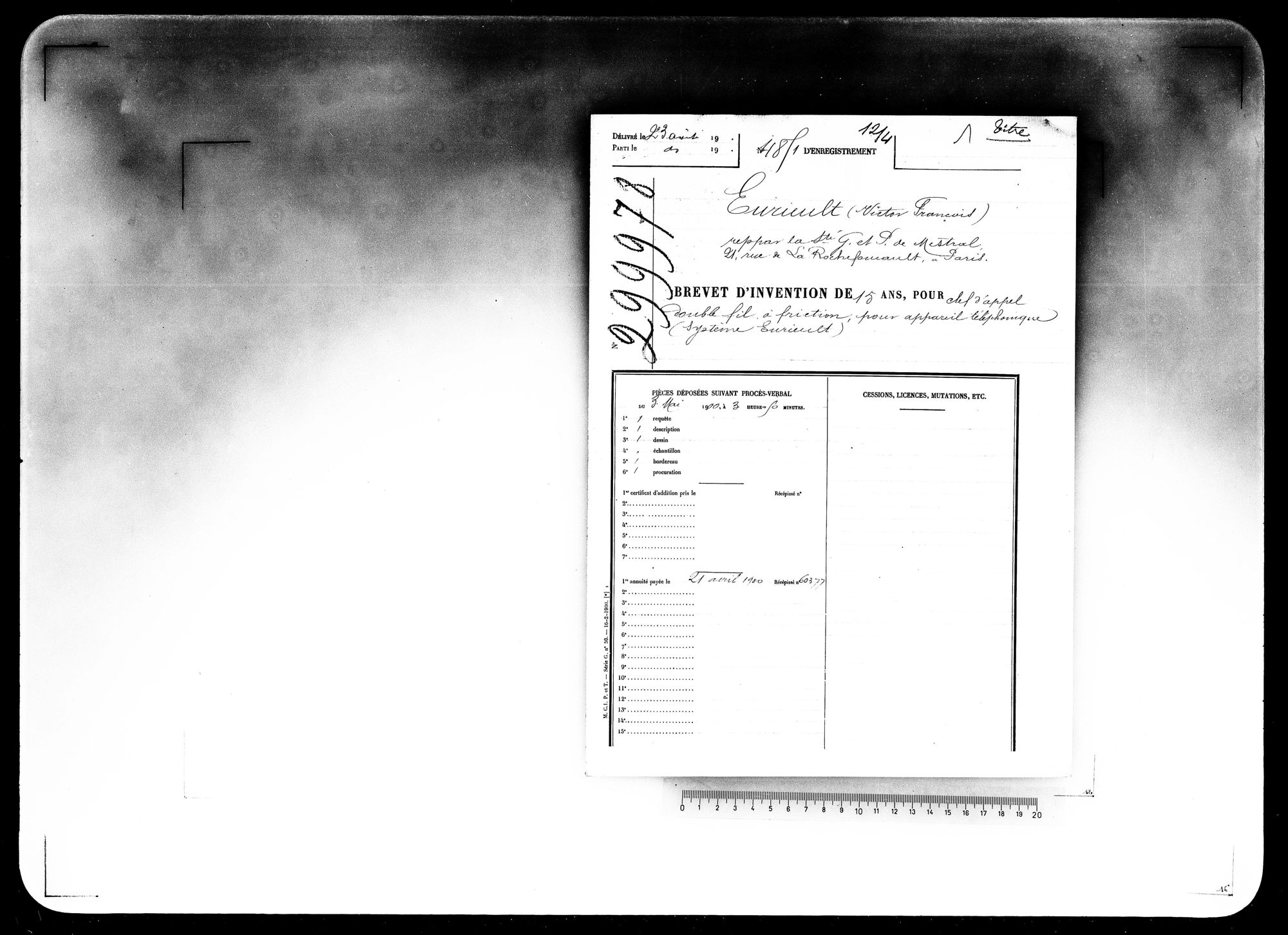 - Brevet d'invention de 15 ans