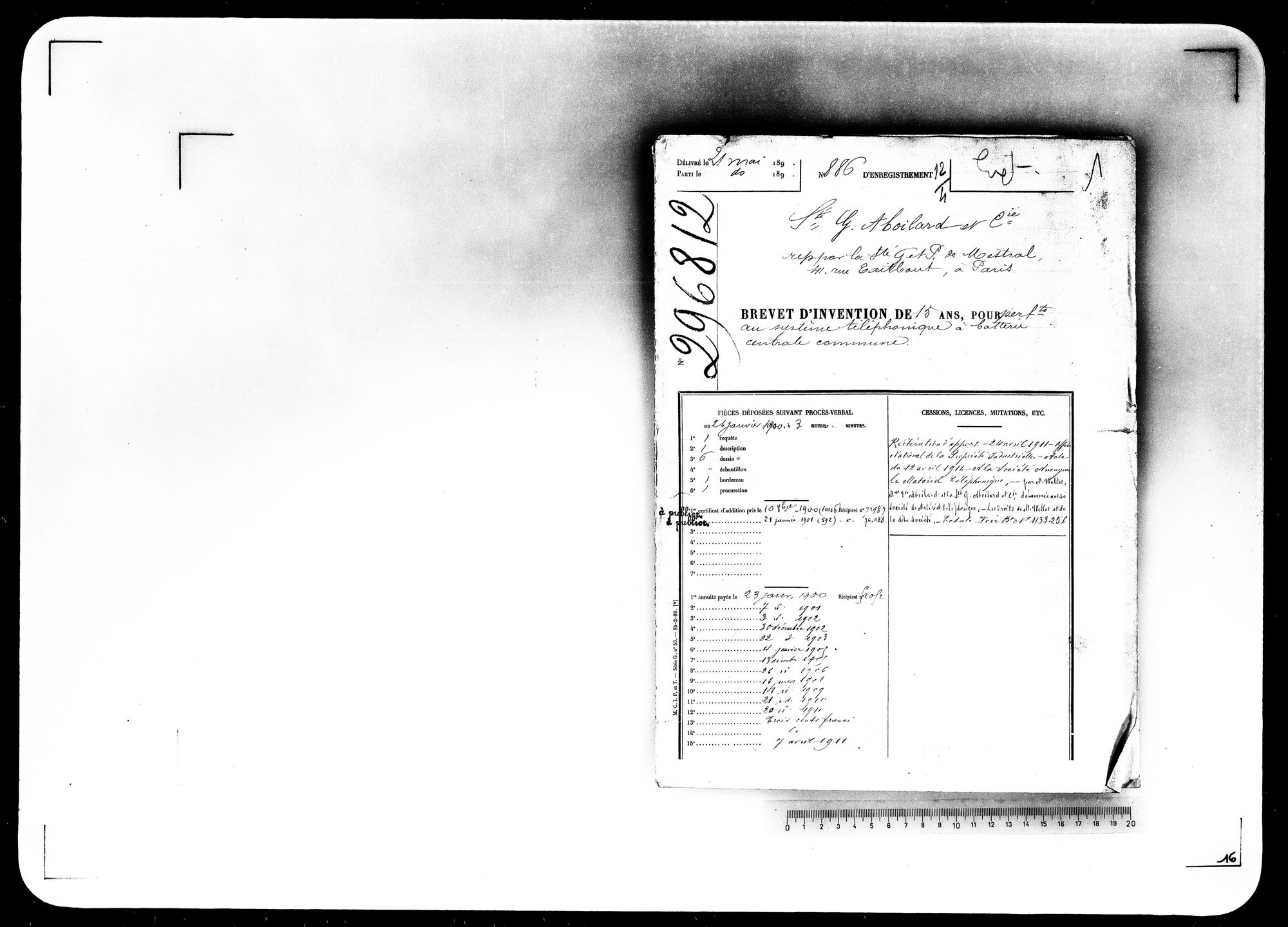 - Brevet d'invention de 15 ans