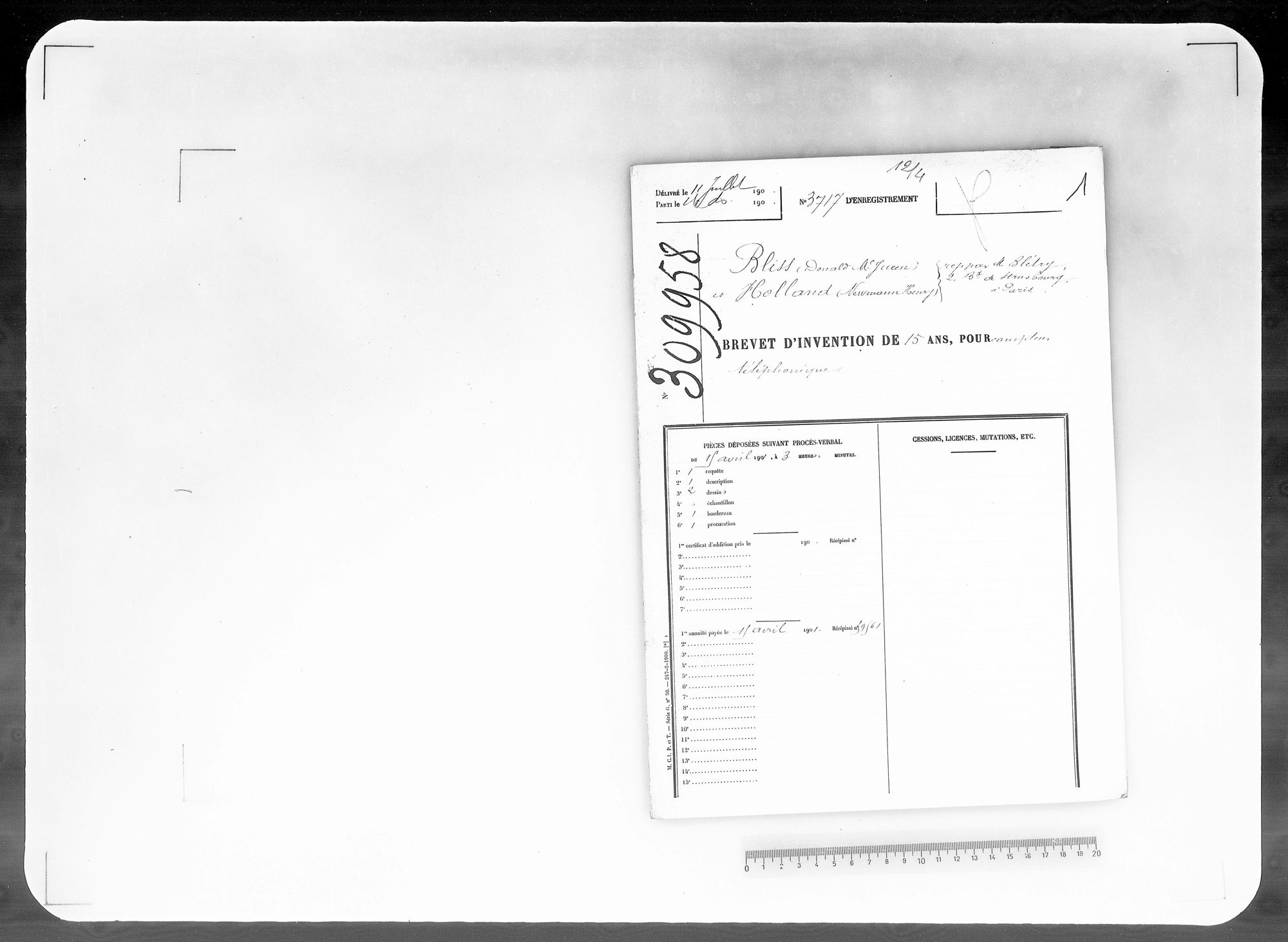 - Brevet d'invention de 15 ans