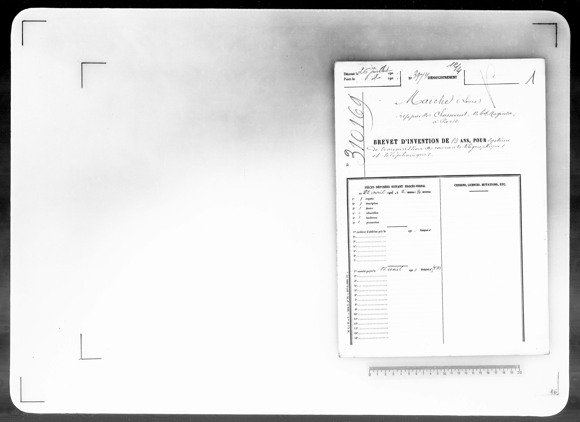 - Brevet d'invention de 15 ans