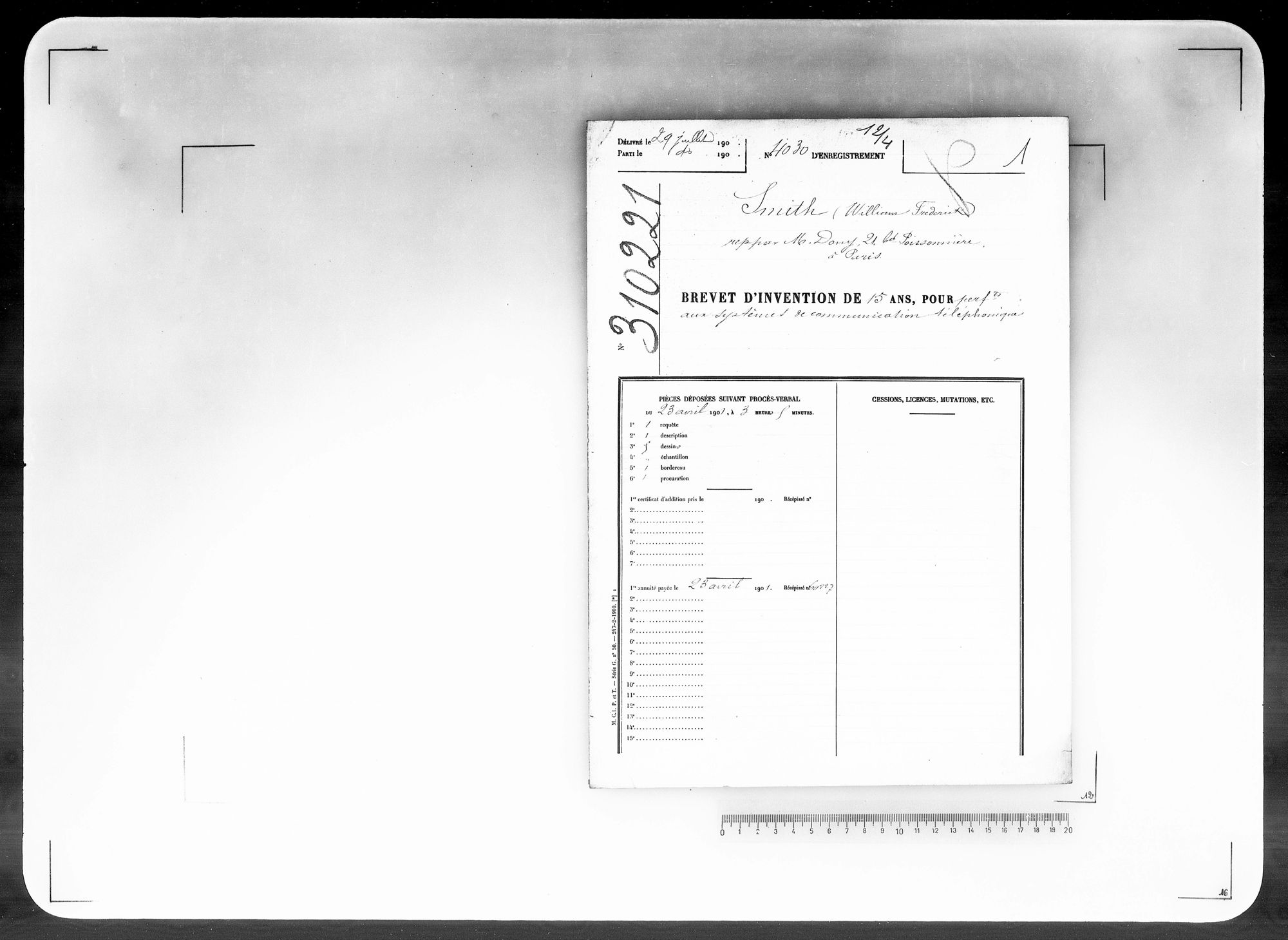 - Brevet d'invention de 15 ans